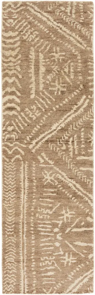 Collection: Wainfleet Colors: Dark Brown, Beige Construction: Hand Knotted Material: 100% Jute Pile: No Pile Styles: Transitional,Bohemian Made In: India Thickness: 0.28" Price Range: $$$$$ (Affordable)