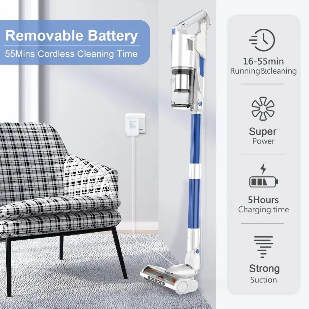 Whall Cordless Vacuum Cleaner, Stick Vacuum Cordless With Strong Suction, Rechargeable Cordless Vacuum With 45min Runtime For Home/carpet, Floor