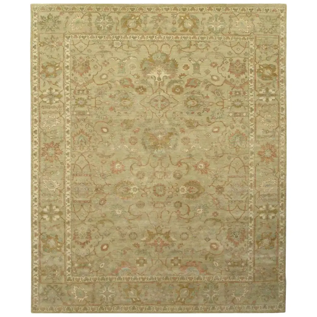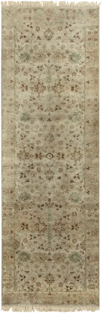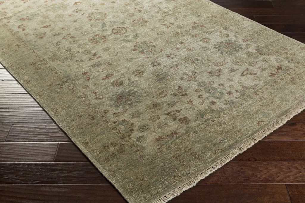 Collection: Wilderville Colors: Light Gray, Dusty Pink, Ice Blue, Medium Gray, Olive Construction: Hand Knotted Material: 100% NZ Wool Pile: Medium Pile Pile Height: 0.31" Styles: Traditional Made In: India Thickness: 0.39" Price Range: $$$$$ (Premium)