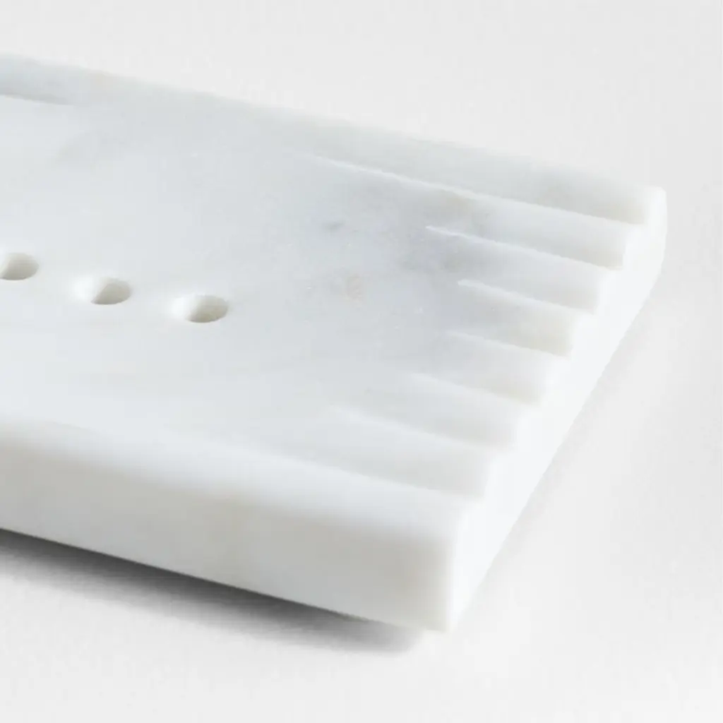 Luxurious in fluted white marble, our Carmen soap dish presents bars in classical style. The gently concave dish cradles soap, with rounded ridges and drainage holes that help soap dry properly. An elevated addition to any bathroom, the Carmen collection especially suits our marble-topped vanities. Due to the natural material, each dish is beautifully unique.