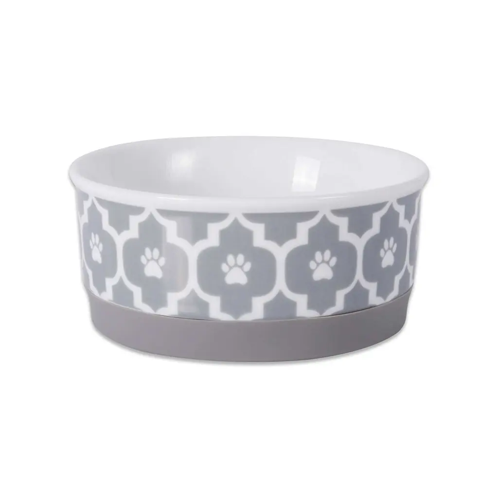 DII Bone Dry has created this Non-Skid Ceramic Pet Bowl Collection for your adorable dogs and cats - ceramic dishes are FDA food safe and California Prop 65 compliant. The bowls are convenient to clean, simply place in your dishwasher when it is time to wash. Bowls are also microwave safe. Silicon rim at the bottom will keep your pet's bowl from sliding around on the floor. No more messy floors for you to clean. Delight your hungry pup or feline with these ceramic bowls available in fun designs that include lattice, paw print stripe, patriotic, marble, and hungry & thirsty.