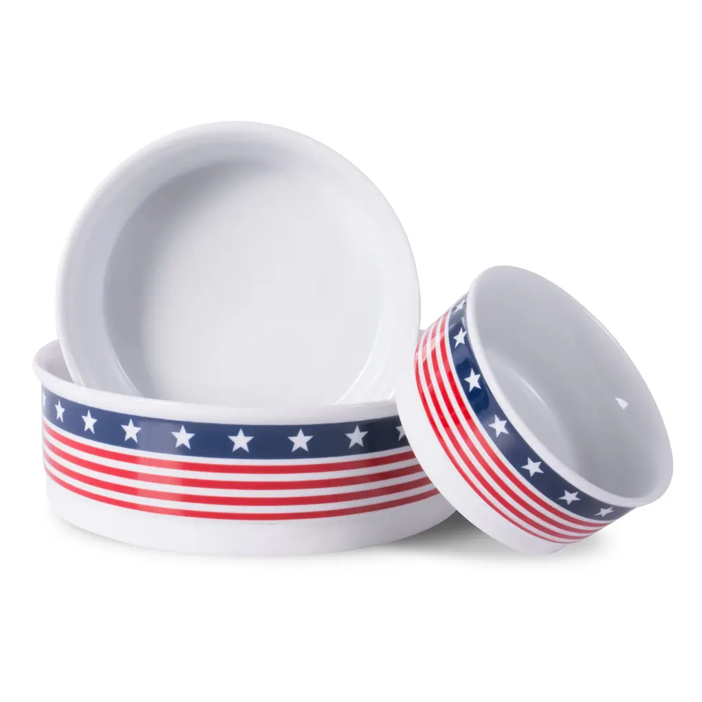 DII Bone Dry has created this Non-Skid Ceramic Pet Bowl Collection for your adorable dogs and cats - ceramic dishes are FDA food safe and California Prop 65 compliant. The bowls are convenient to clean, simply place in your dishwasher when it is time to wash. Bowls are also microwave safe. Silicon rim at the bottom will keep your pet's bowl from sliding around on the floor. No more messy floors for you to clean. Delight your hungry pup or feline with these ceramic bowls available in fun designs that include lattice, paw print stripe, patriotic, marble, and hungry & thirsty.