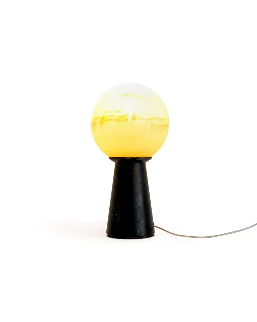 Handmade Conical Lamp With Sphere In Black Marquina Marble