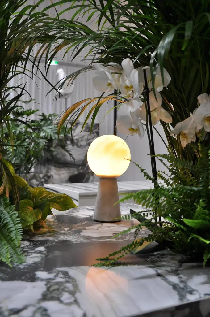 Handmade Conical Lamp With Sphere In White Carrara Marble