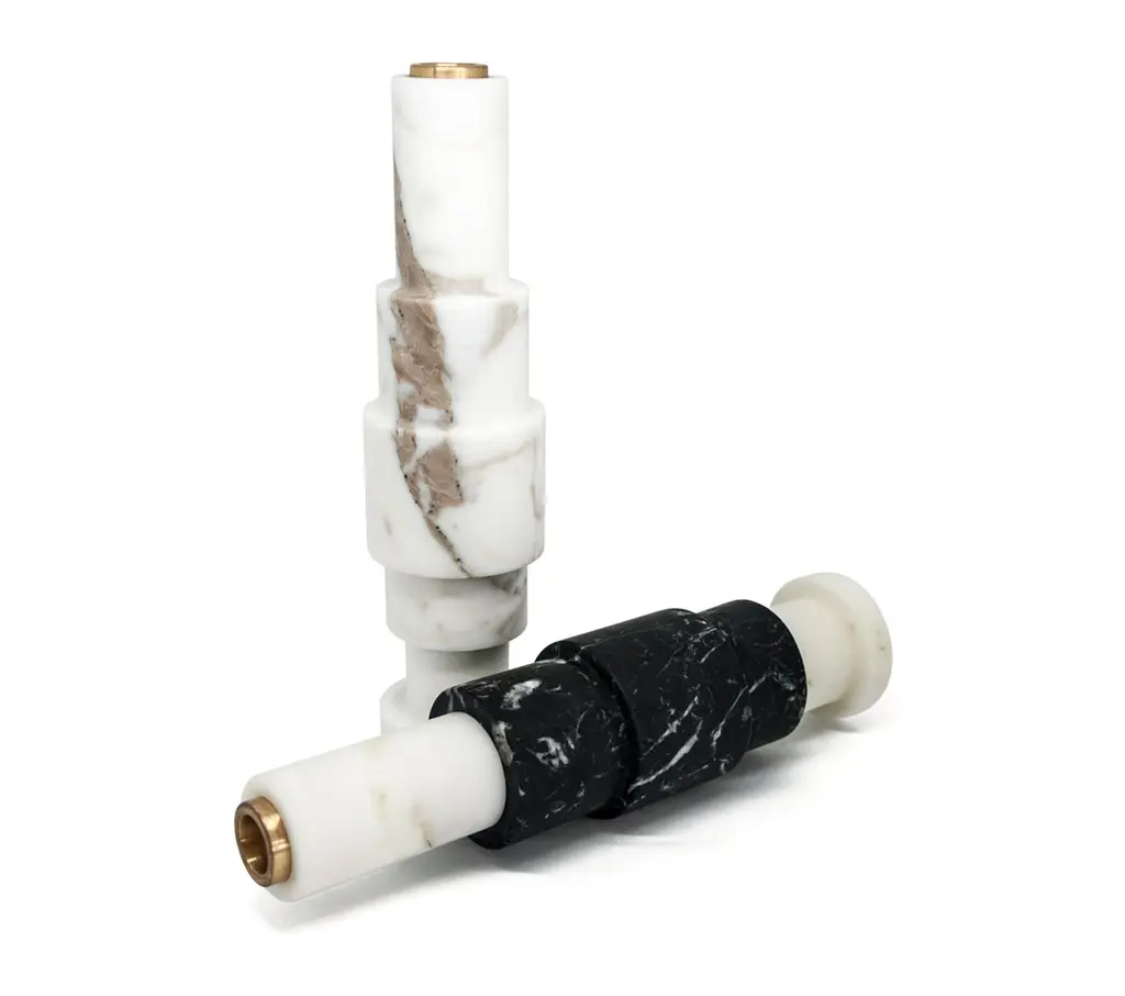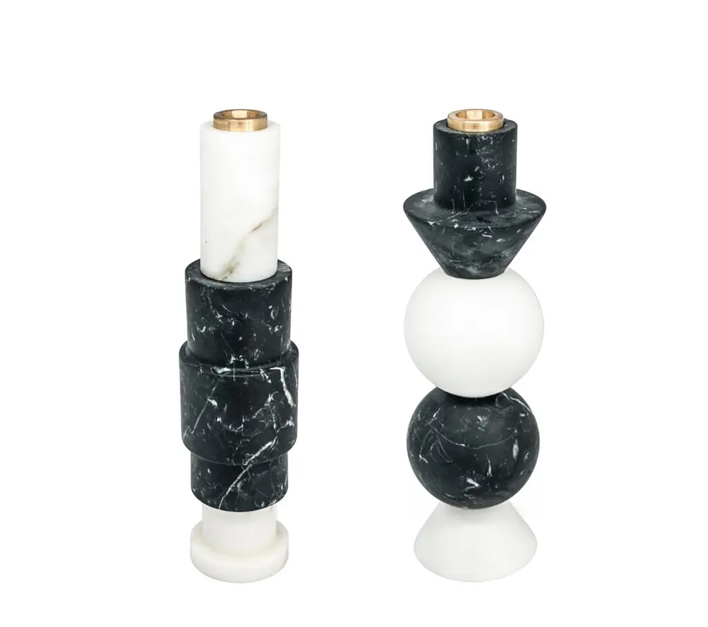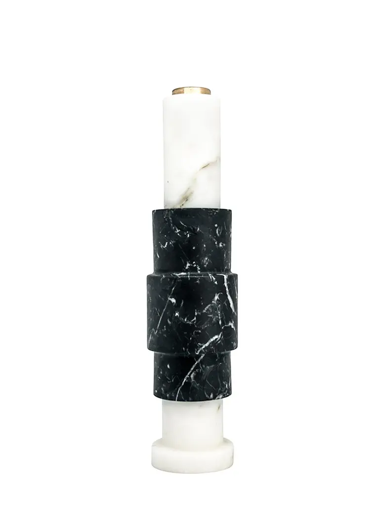 Handmade High Squared Two-Tone Candleholder In Carrara And Marquina Marble