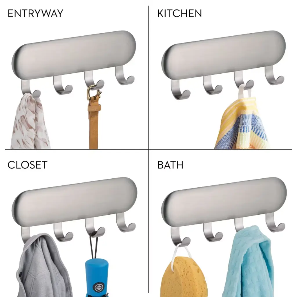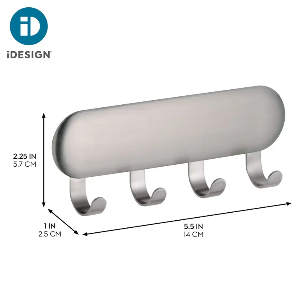 Turn empty walls into valuable space with the iDesign Forma Self-Adhesive Key Rack. Equipped with four snag-free hooks, this versatile rack creates the ideal resting place for keys, dog leashes, and more to help eliminate clutter. The self-adhesive backing easily mounts to any smooth, flat surface and serves as a sophisticated catchall everywhere from entryways to garages, keeping your most reached-for belongings in sight and always within easy reach. With iDesign, you can live simply every day.