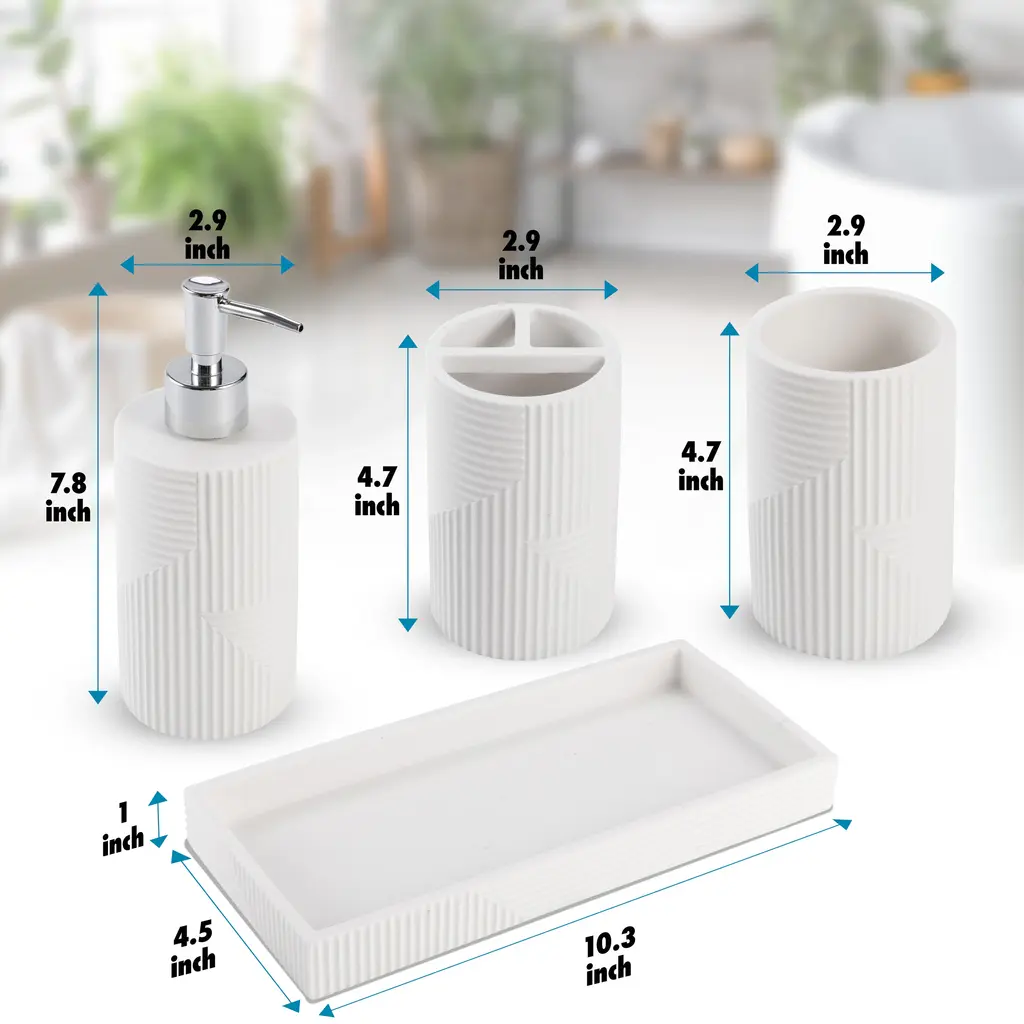 Kralix 4 Piece White Bathroom Accessories Set, Modern Bathroom Soap Dispenser Set, Bathroom Toothbrush Holder Set, Tumbler and Soap Dish, White Marble Bathroom Accessories Set. WHITE MARBLE BATHROOM ACCESSORIES SET - this modern bathroom accessories set is very stylish and will upgrade your bathroom instantly. This bathroom accessories sets complete is beautiful. BATHROOM DECOR SETS ACCESSORIES - this 4 piece bathroom set comes with bathroom soap dispenser and toothbrush holder set, tumbler and soap dispenser. Made from premium resin.WHITE BATHROOM ACCESSORIES SETS COMPLETE - there is nothing else out there like this beautiful rustic bathroom accessories set. Juego de baño completo blanco, set de baño perfecto para la casa.SOAP DISPENSER BATHROOM SET - very well designed bathroom sink decor so that you can compliment your bathroom with this bathroom accessory set and vanity set.GREAT GIFT IDEA - this sturdy and durable bathroom sets accessories comes neatly packaged for safe shipping. Perfect gift for any occasion for family, friends, housewarming, wedding or colleagues.