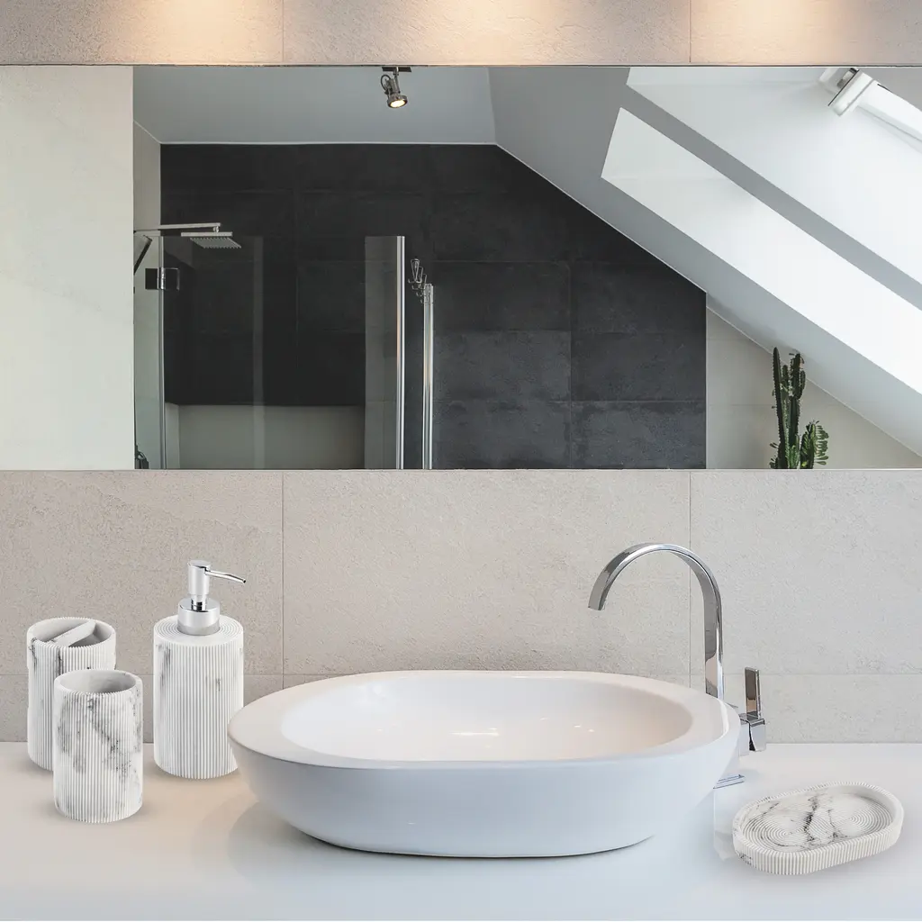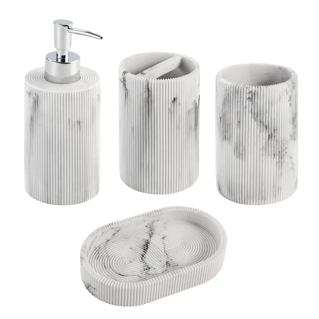 Kralix 4Pc Marble Effect Resin Bath Accessory Set - White