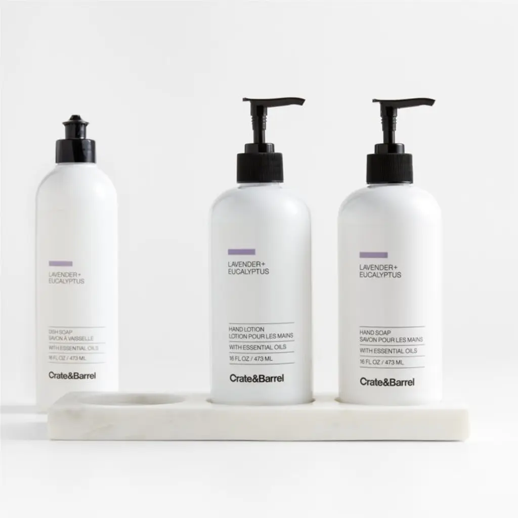 Lavender + Eucalyptus Hand Soap, Lotion And Dish Soap Set With White Marble Caddy