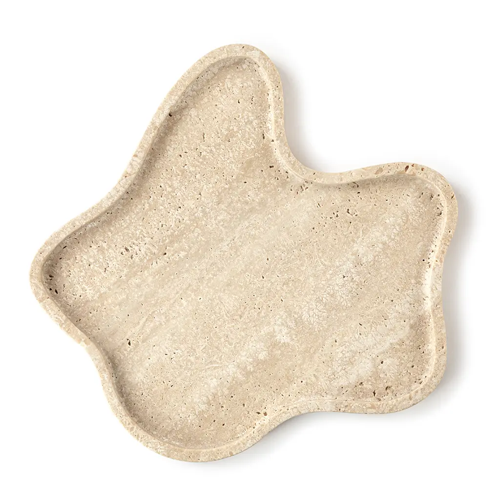 Expertly sculpted from a single piece of solid travertine, the Mae Wavy Travertine Catchall is a peaceful, organic-shaped tray for keeping any surface attractively in order. Its beautifully carved space allows you to house your cosmetics, jewelry, or any personal accessories neatly, and accessibly.