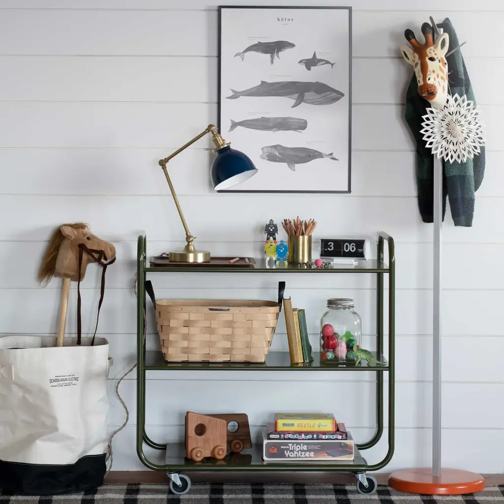 Inspired by the rolling carts found in old machine shops, a multi-purpose design and three versatile sizes make it well-suited for a variety of spaces. Perfect for both storage and display, this expertly crafted cart is an ideal catch-all for homewares big and small. Features a sleek powder-coated frame and non-marking casters that lock, so you can safely move your wares where you desire. A Schoolhouse Original. Get Finish Samples
