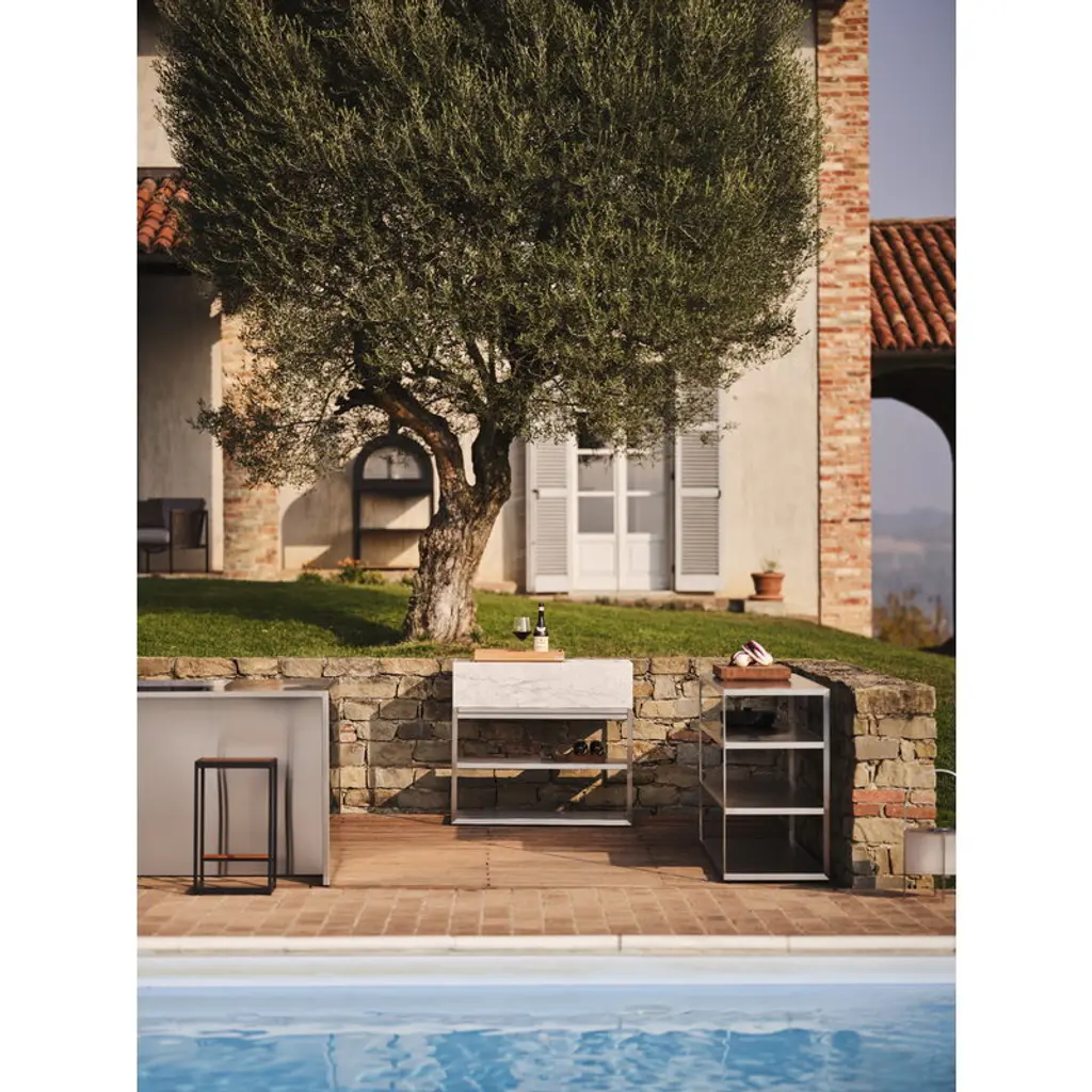 The Module Marble by Röshults is designed for discerning tastes. Made of Italian Carrara marble, the sculptural and elegant countertop module gives your outdoor kitchen more space for cooking and socializing. Complement with other pieces from the Module collection. Designed by Broberg & Ridderstråle for the Swedish brand Röshults, the Module collection allows you to create the perfect outdoor kitchen for your own needs. The modules are made of durable, weatherproof materials and they share an exquisite appearance and balanced form language. The modules can be combined with the frames of the Röshults Open Kitchen and Kitchen Island collections.