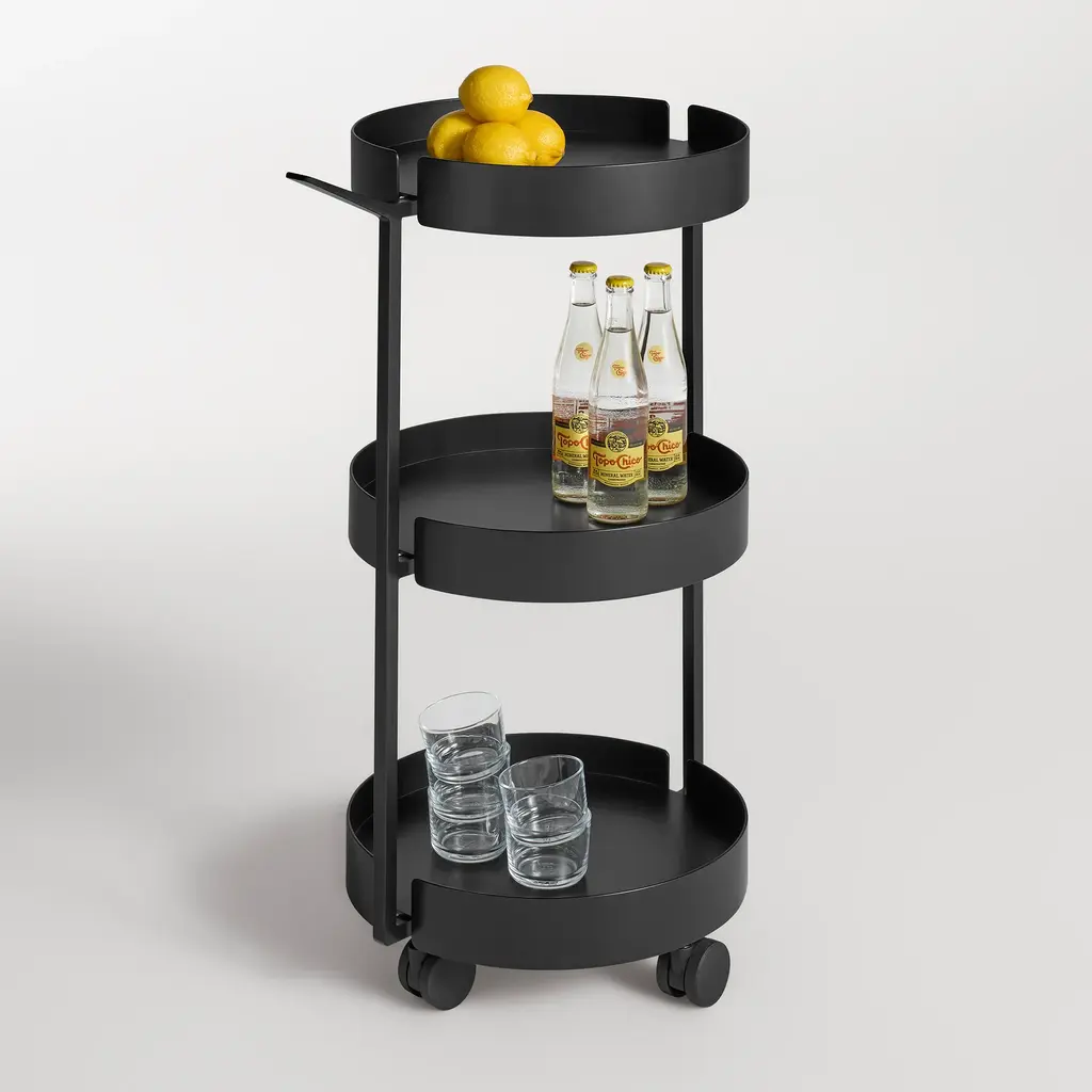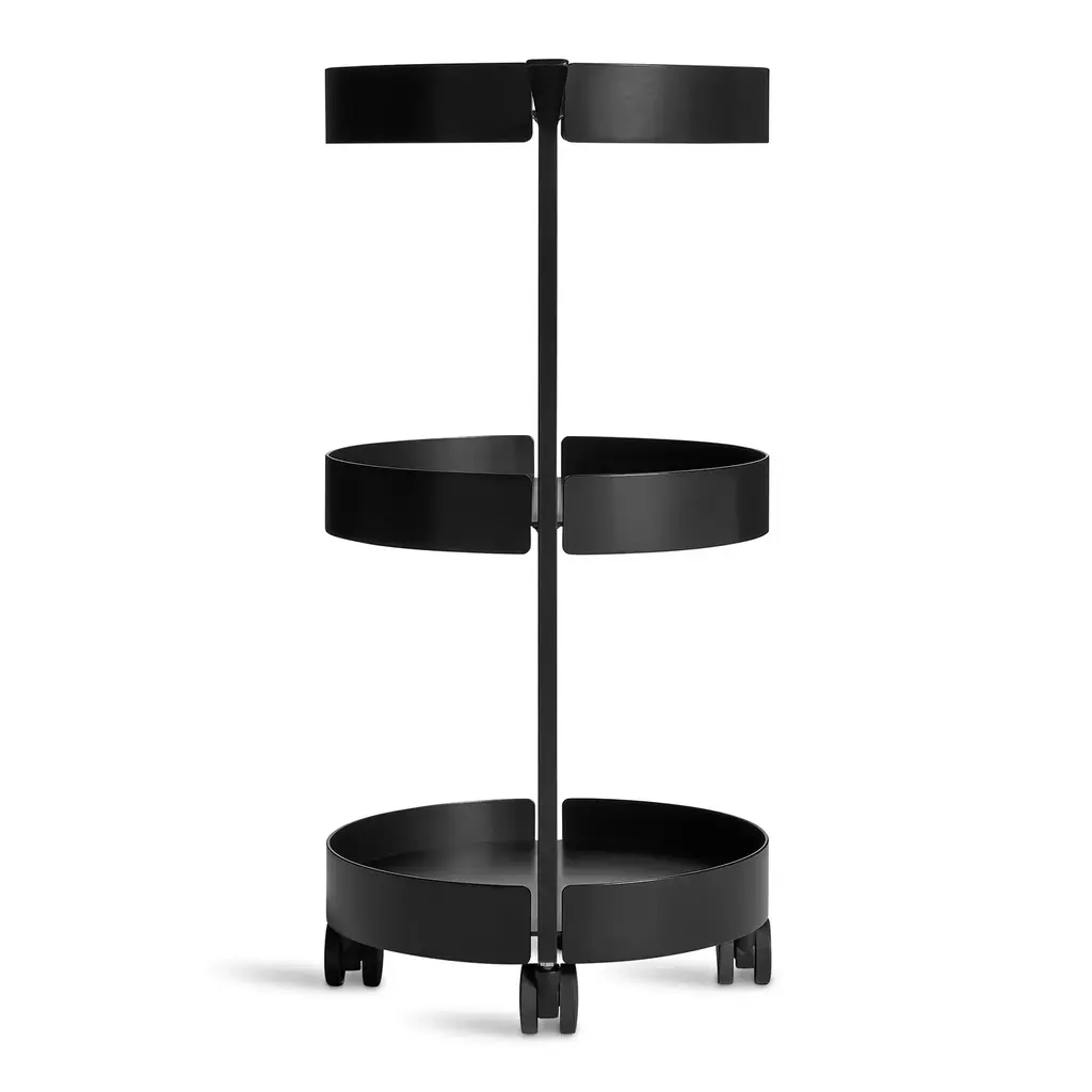 Tiered forms of powder-coated steel stack to become a robust and capable catch-all. Scoots’ pan-like handle offers the ideal push-and-pull grip, while smooth casters safely transport your belongings from point a to point b, c and d.
