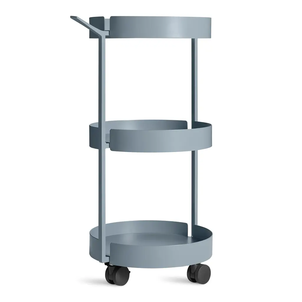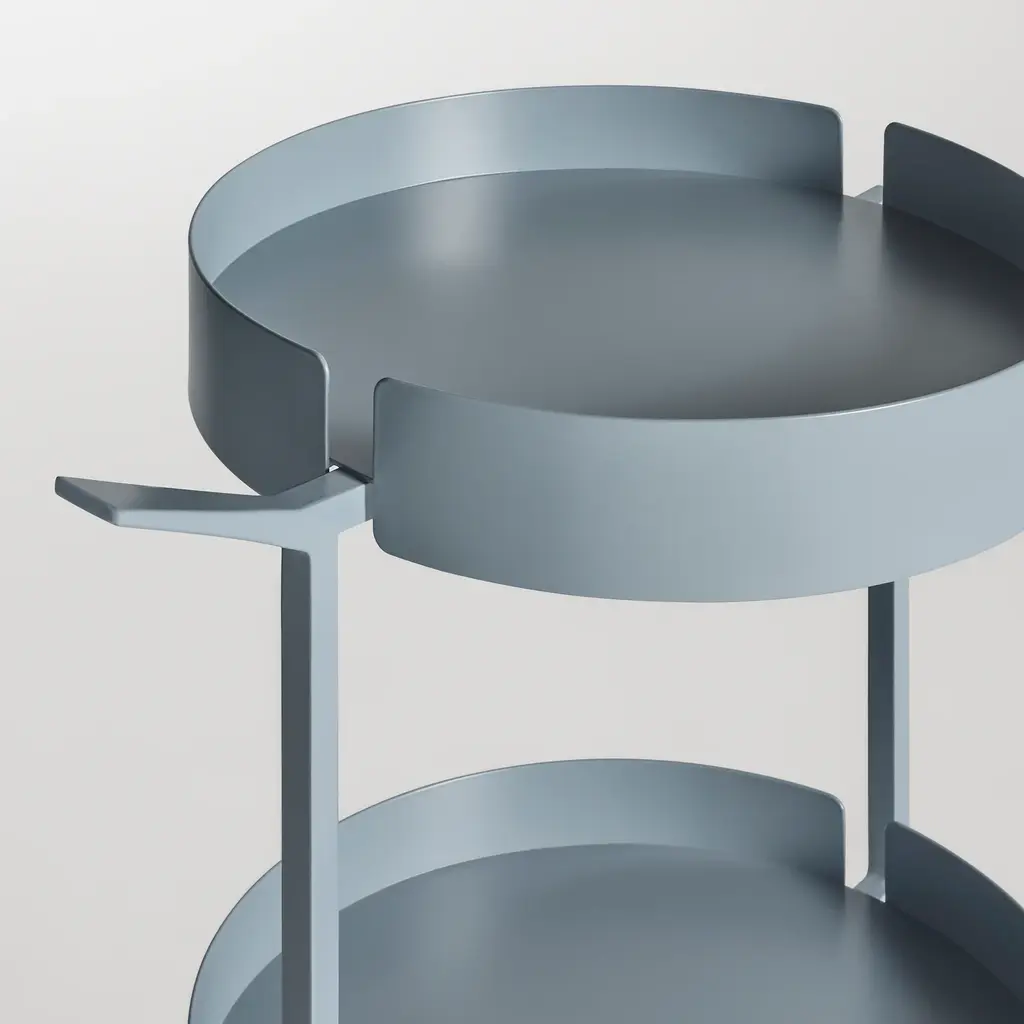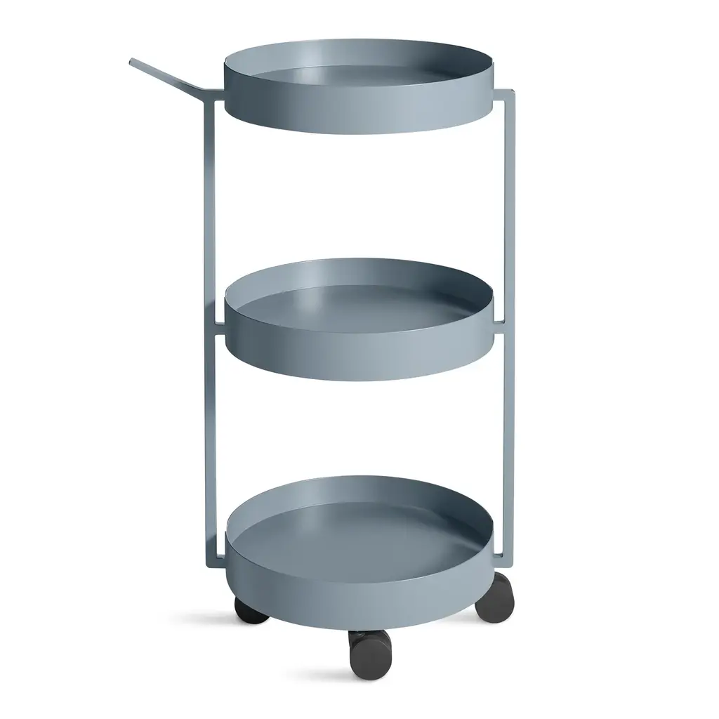 Tiered forms of powder-coated steel stack to become a robust and capable catch-all. Scoots’ pan-like handle offers the ideal push-and-pull grip, while smooth casters safely transport your belongings from point a to point b, c and d.