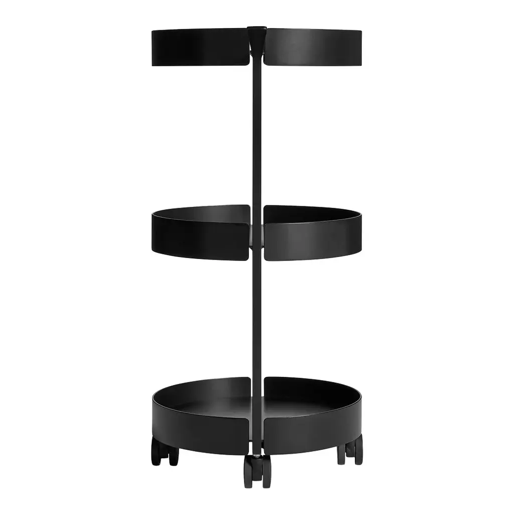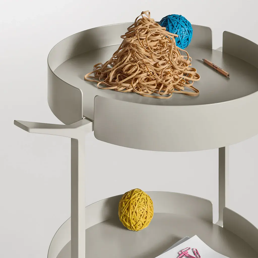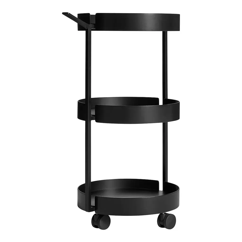 Tiered forms of powder-coated steel stack to become a robust and capable catch-all. Scoots’ pan-like handle offers the ideal push-and-pull grip, while smooth casters safely transport your belongings from point a to point b, c and d.