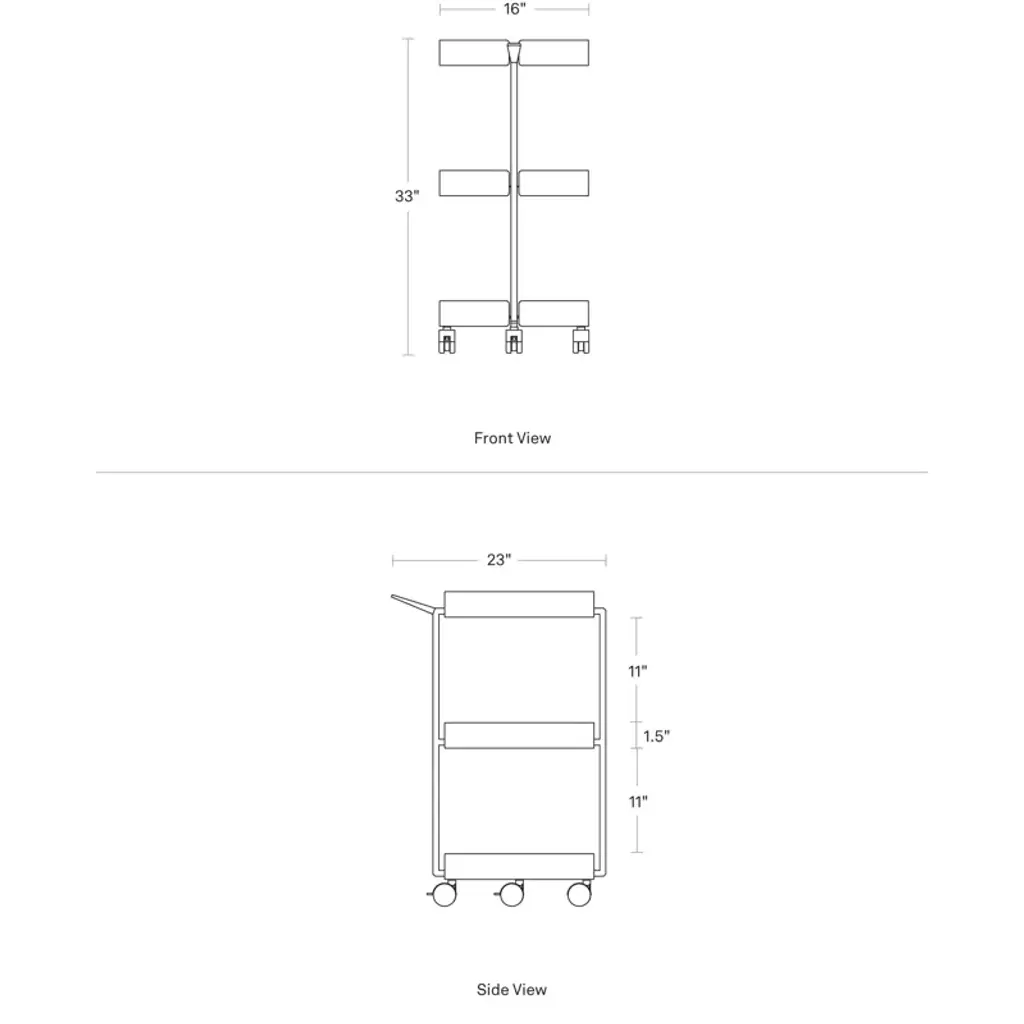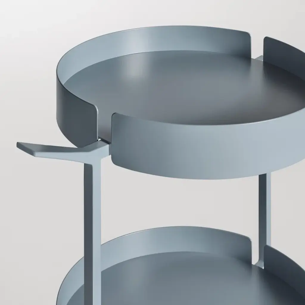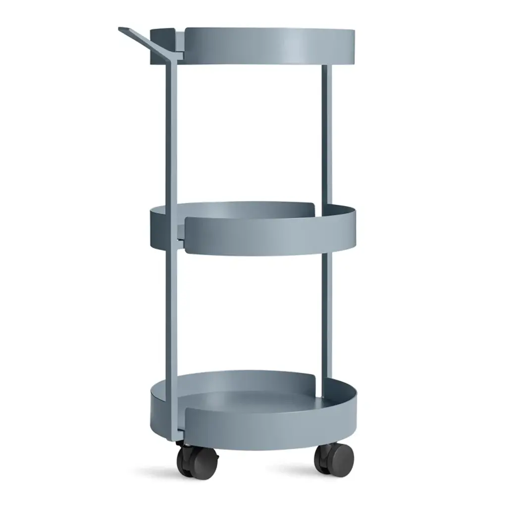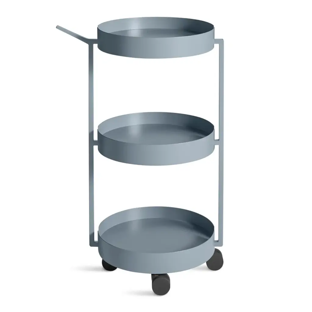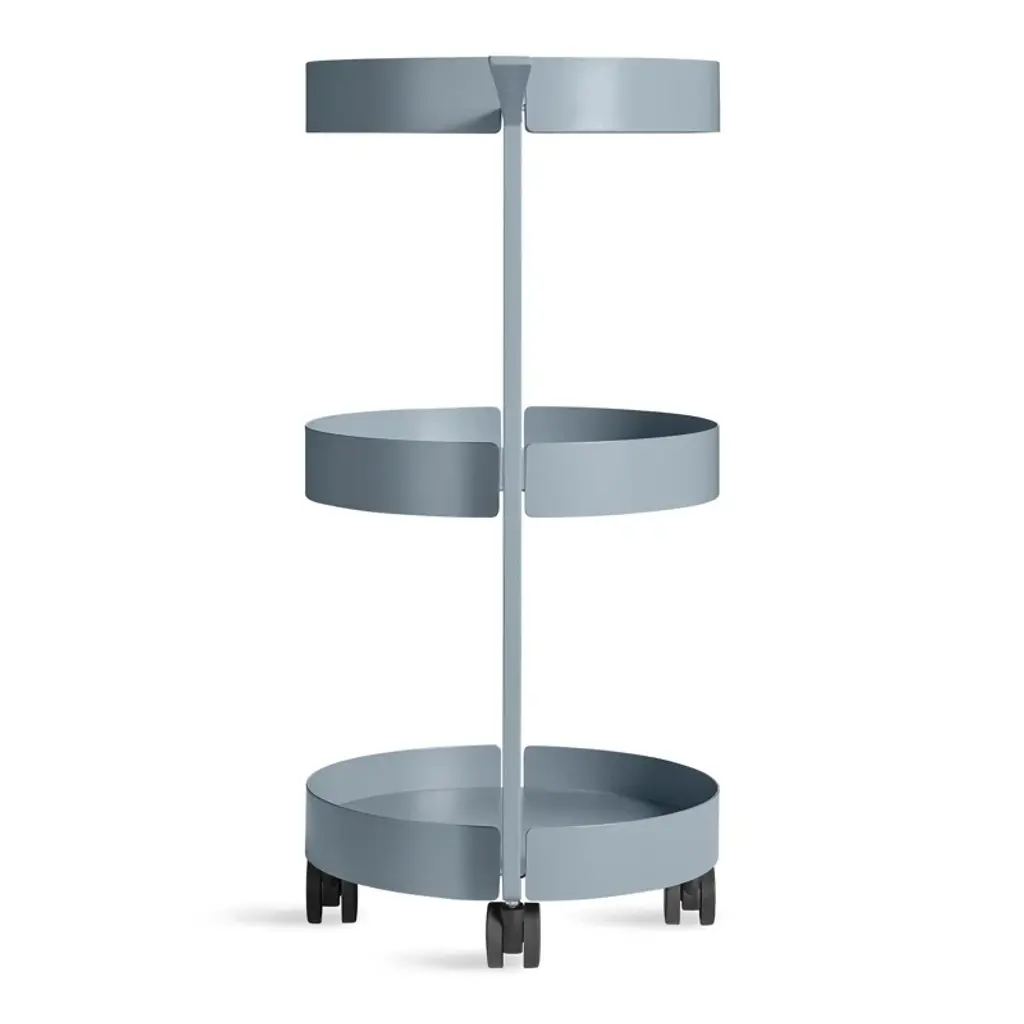 Tiered forms of powder-coated steel stack to become a robust and capable catch-all. The scoots' pan-like handle offer the ideal push-and-pull grip, while smooth casters safely transport your belongings from point a to point b, c and d.