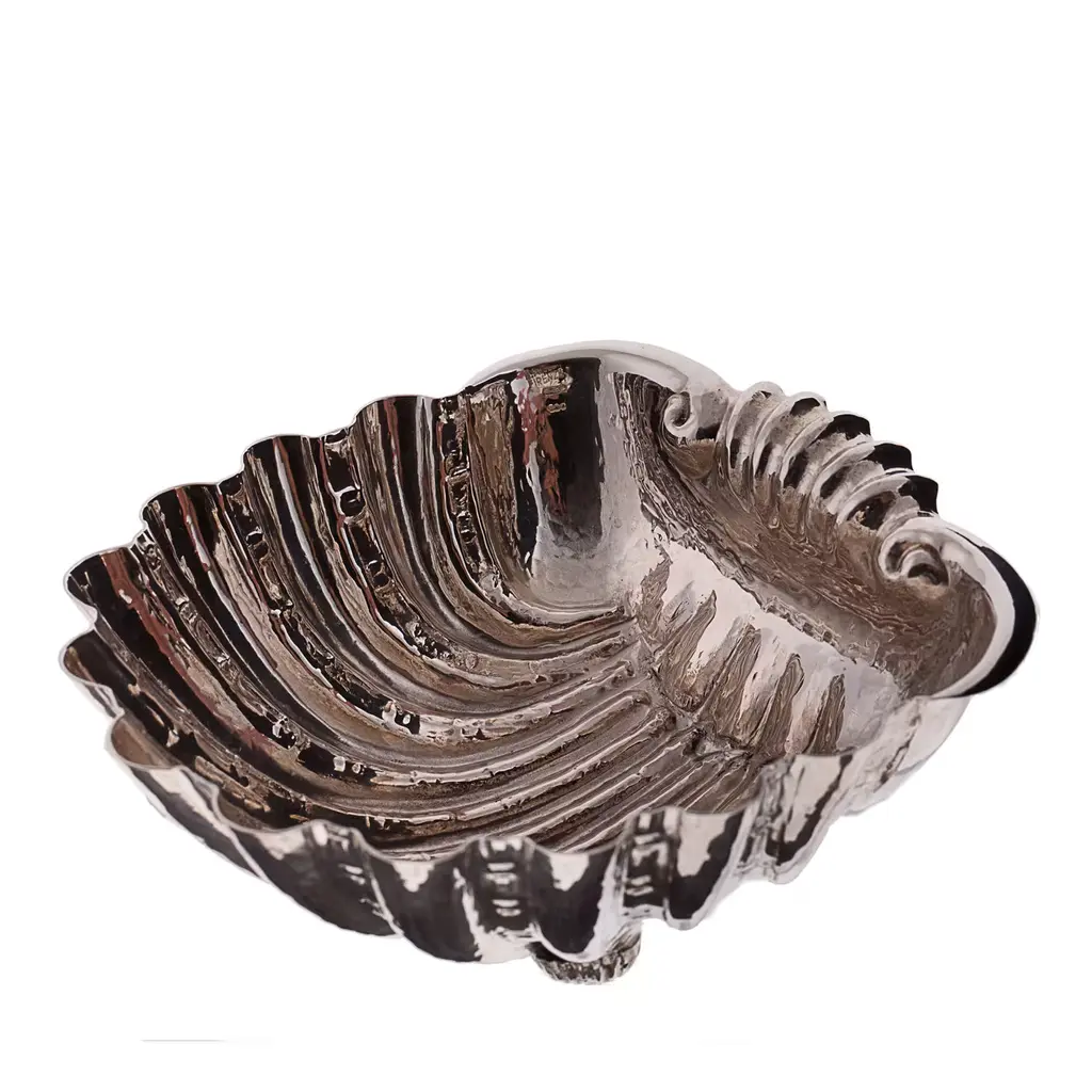 Arthur Court's sand-cast aluminum alloy is the perfect material for this Oyster shaped Catch-All Tray. The shiny luster of the tray mimics the inside of a real oyster to reflect the pretty objects you display on the tray or enhance the little treat tidbi As unique as the shell fish that inspired it's design, our Oyster Catch-All Tray is hand-crafted in Arthur Court's signature aluminum alloy. The design of an open oyster shell has plenty of room to hold glasses, keys or jewelry wherever you decide to display the tray. You can also serve tasty bites on it if you desire. We like it to hold extra picks on our seafood buffet table.