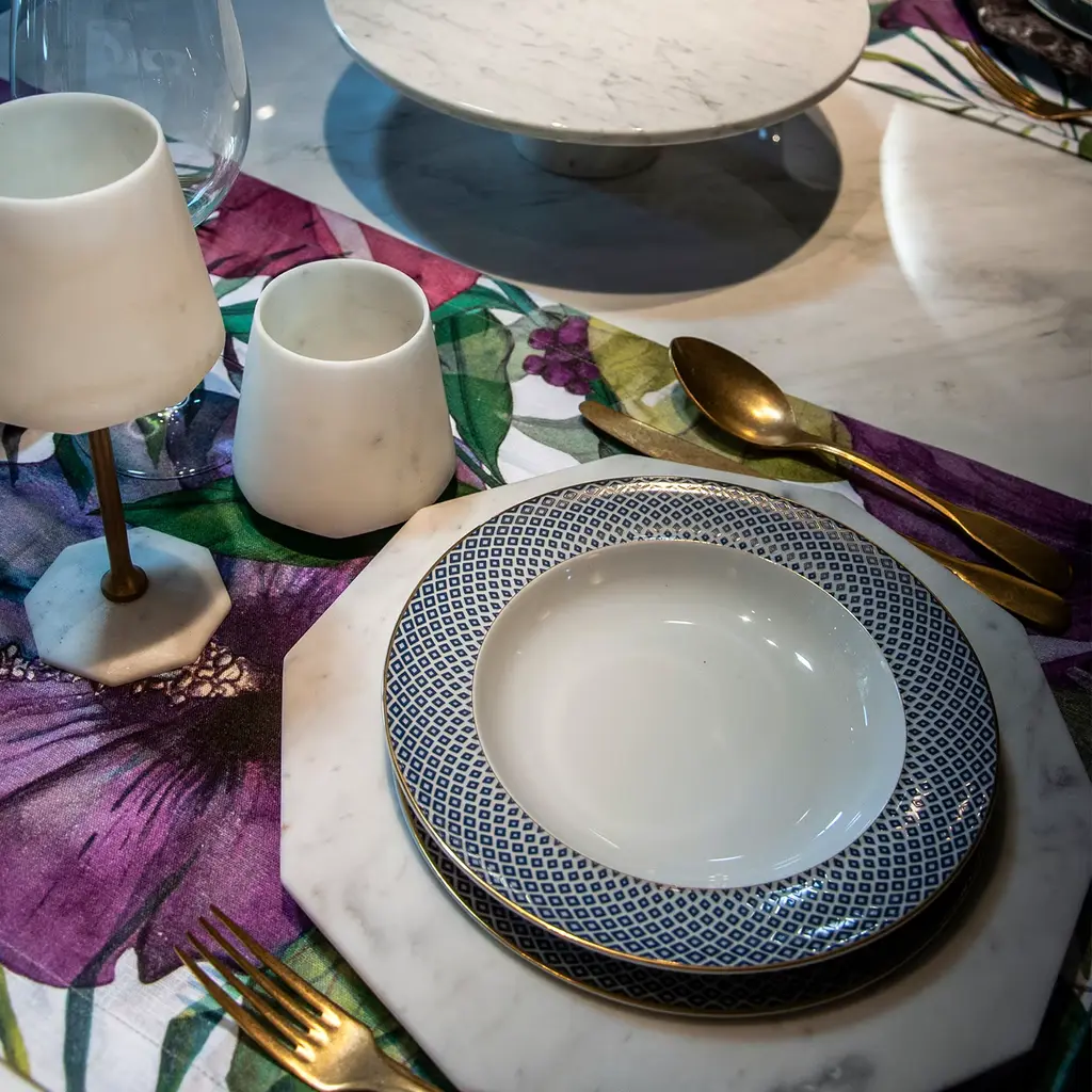 Set Of 2 Water Glass In White Carrara Marble