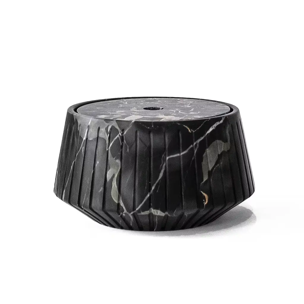 Striped Objects Holder in Portoro marble. Each piece is in a way unique (every marble block is different in veins and shades) and handmade by Italian artisans specialized over generations in processing marble. Slight variations in shape, color, and size are to be considered a guarantee of a handmade creation. It's important not to use lemon or vinegar on it, clean only with water and natural soap (like Marseilles soap), do not put in dishwasher.