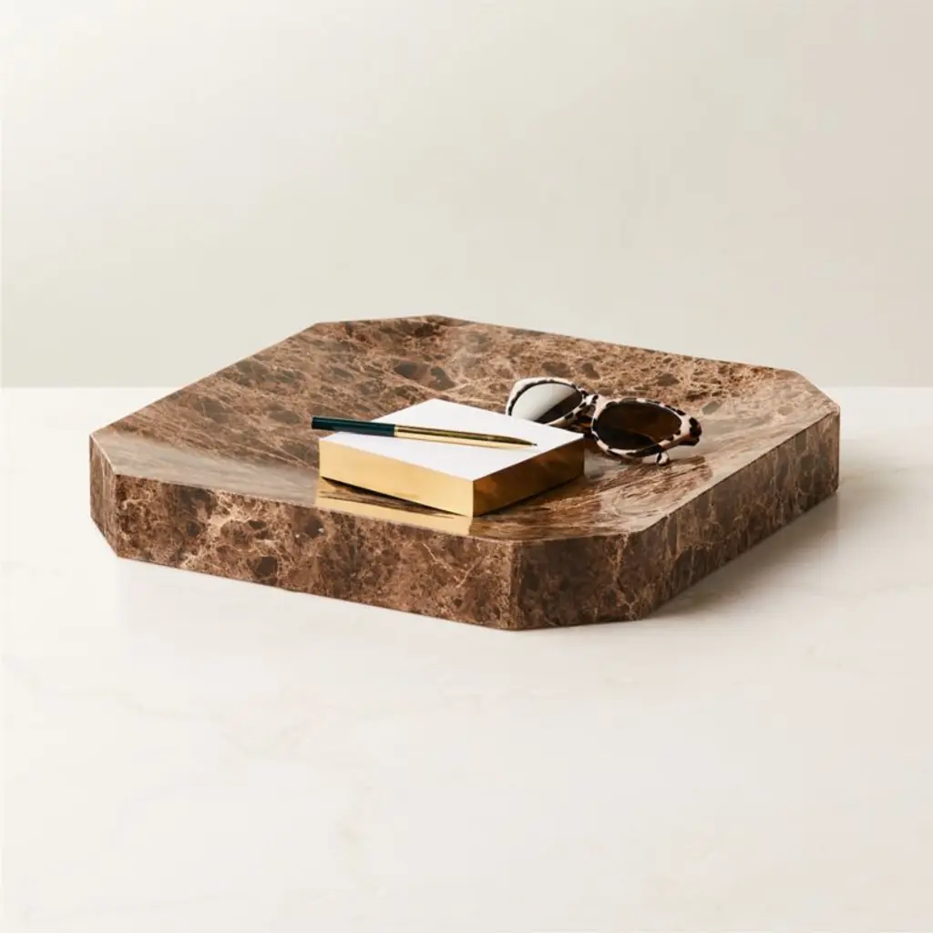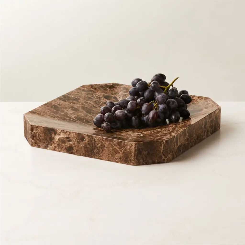 The rich, chocolaty and caramel tones of brown Emperador marble mingle in this stylish catchall. Sized to hold everyday essentials such as keys and jewelry, it may also be used in the kitchen as a decorative fruit bowl. Due to the characteristics of natural stone, each piece will be unique. CB2 exclusive.