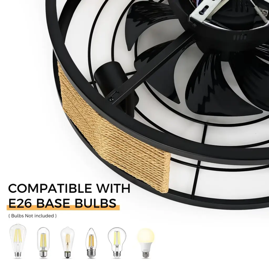 20 In. Indoor Black 100-240 V With Remote Control Rattan Cage Ceiling Fan With Light
