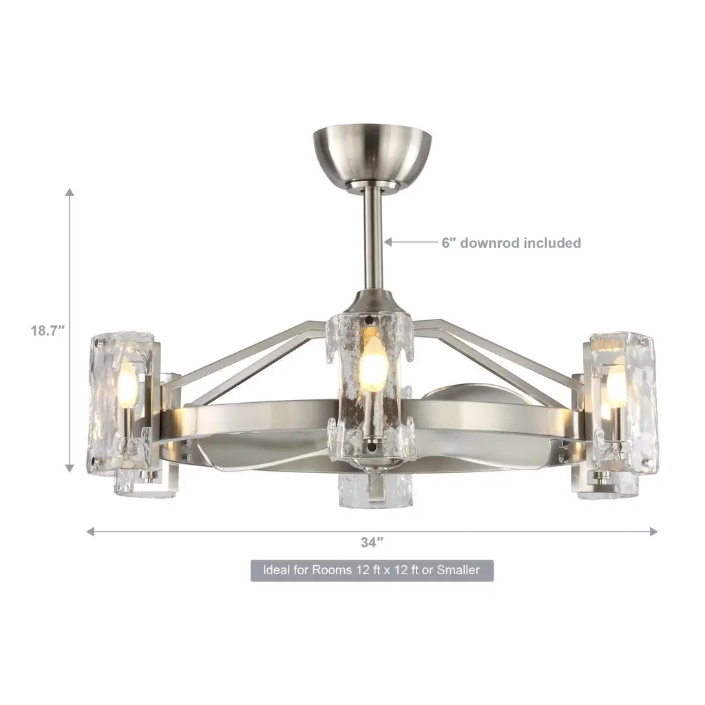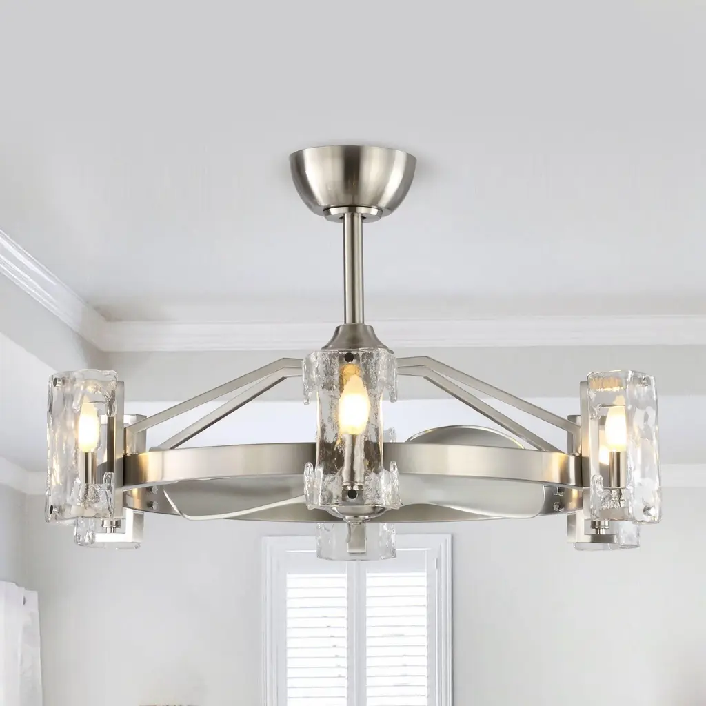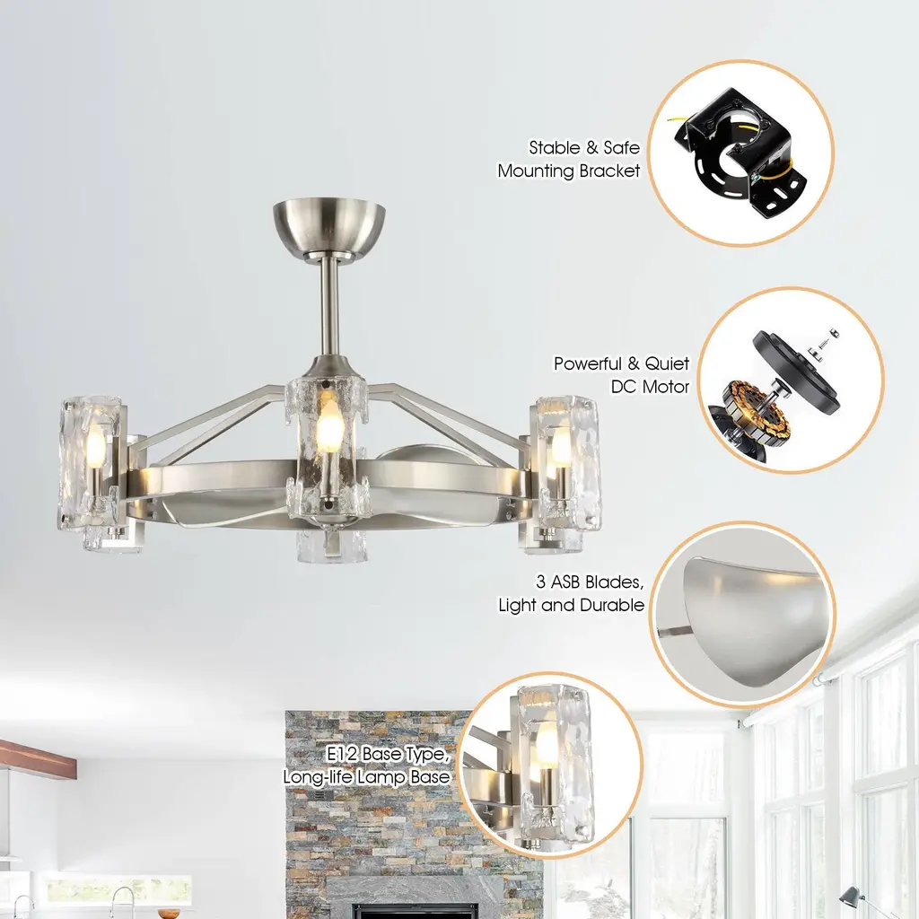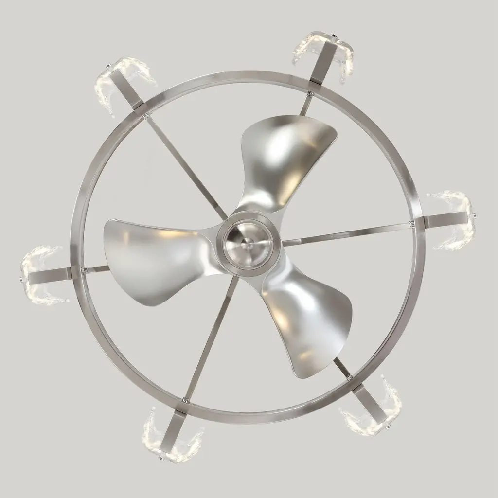 This decorative and functional chandelier ceiling fan Fandelier 3 blades ceiling fan with a light and remote. Reversible blades. 6 fan speed gives off a great airflow, required 6-piece 4-Watt light bulbs. The timing function, allows you are able to choose the working time. With its delicate hand-craft and glamorous appearance, this Satin Nickel 3 Blade Ceiling Fan with Remote is surely a statement piece for your kitchen, dining room, living room, bedroom, or foyer.
