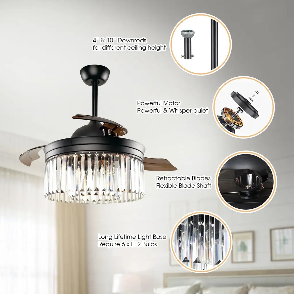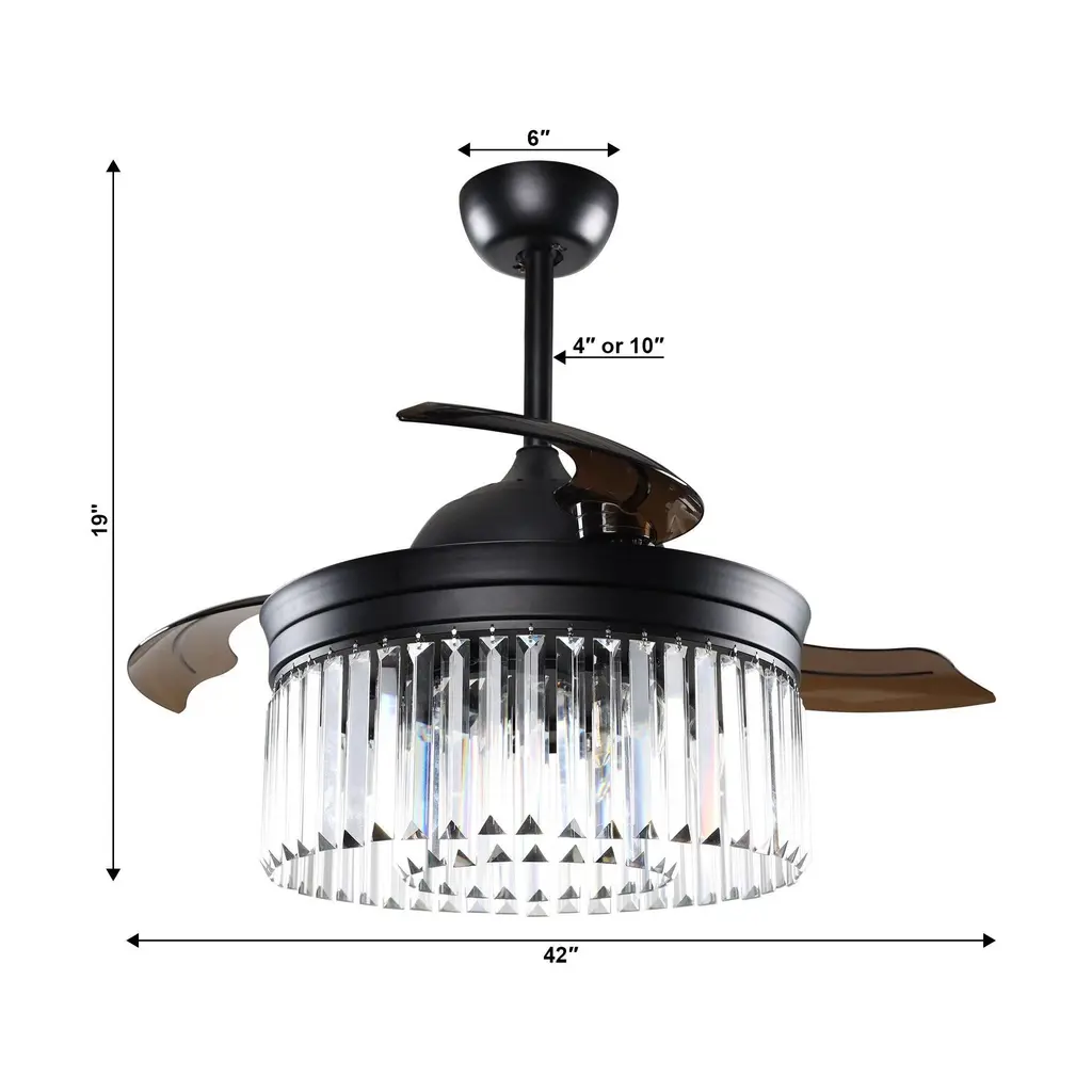 42" Modern Downrod Mount Crystal Ceiling Fan With Lighting And Remote Control - Black
