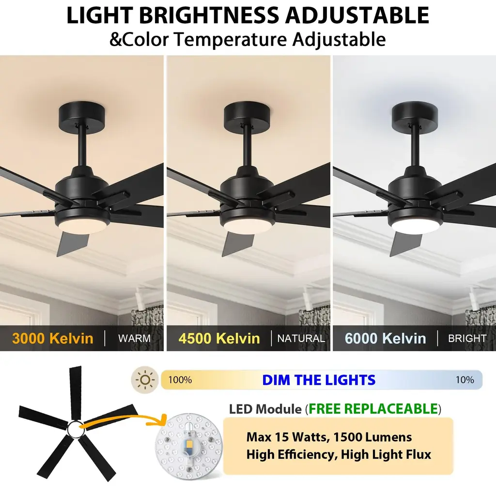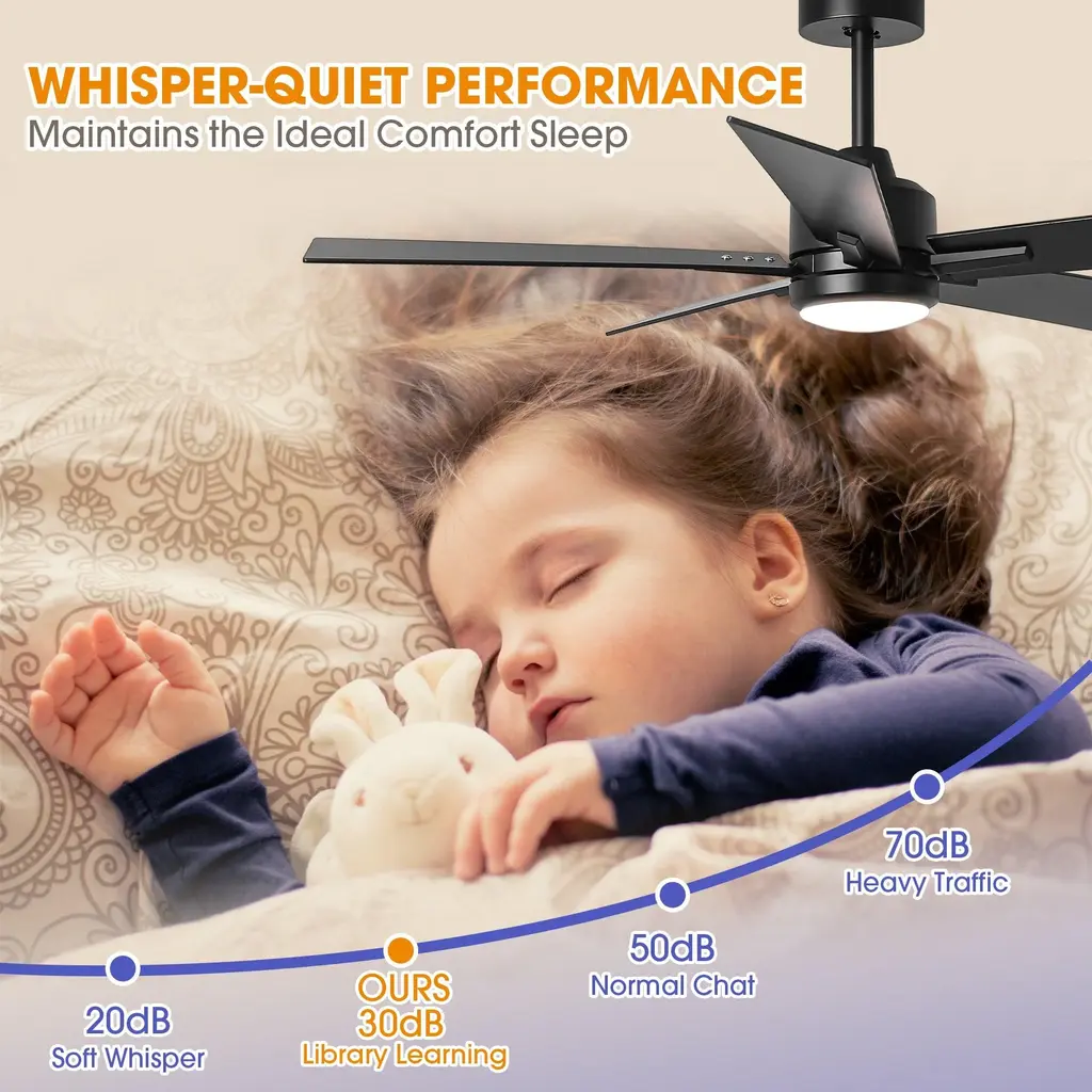 Enhance your living space with this 48" Ceiling Fan with LED Light. This high-quality fan is a tool to keep your space cool and a stylish addition to your room. The fan features a sleek, modern design with five blades, offering a perfect blend of style and functionality. The DC motor ensures energy efficiency and quiet performance, making it ideal for bedrooms, living rooms, or any room where noise is a concern. With a remote control, you can easily adjust the fan speed and light settings from anywhere in the room. The LED light is energy-efficient and long-lasting, reducing the need for frequent bulb changes. This ceiling fan is not only easy to install but also easy to maintain, thanks to its durable construction. It will surely add an elegant touch to your home decor while providing a comfortable living environment.