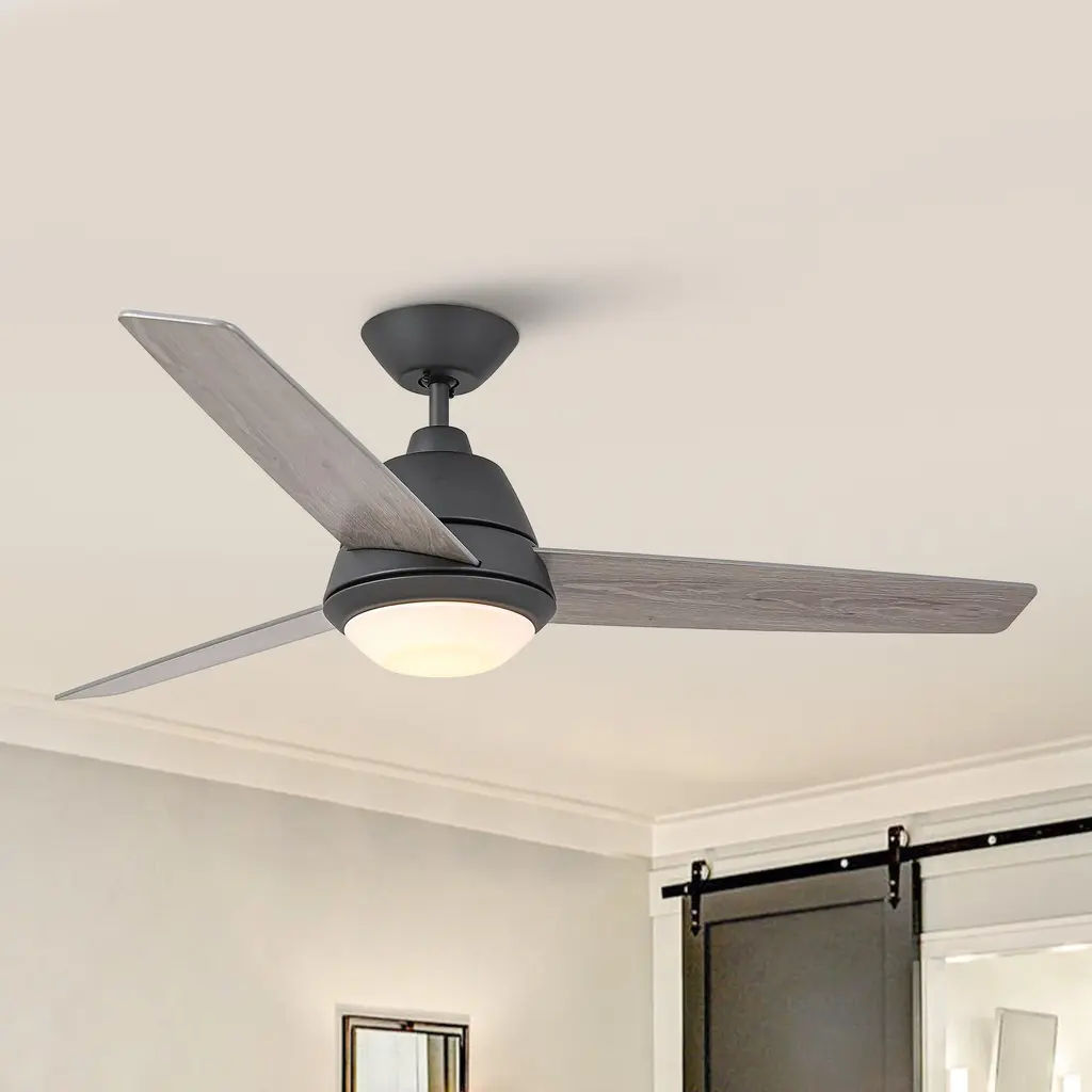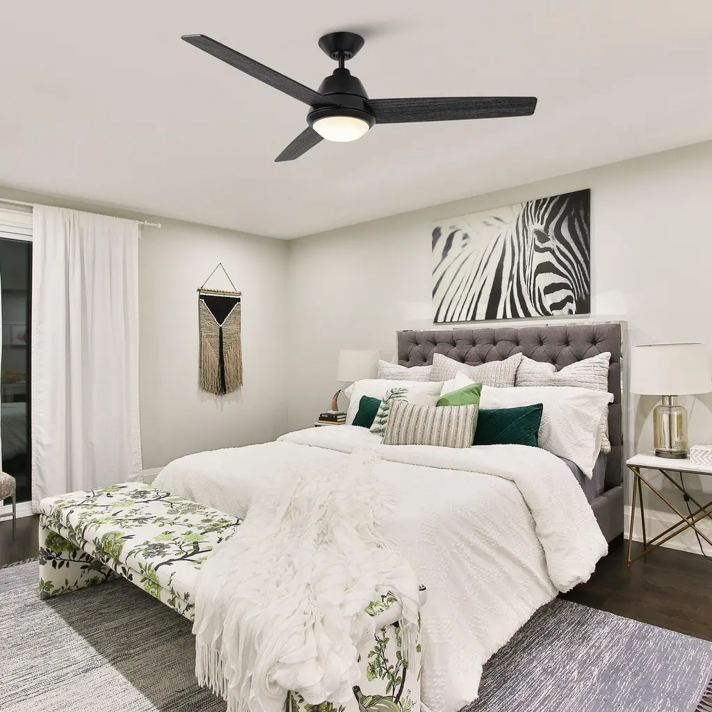 This 52" wall-controlled ceiling fan with LED lighting elevates any space and is designed to match most interior styles, from modern to minimalist industrial. It features a reversible and quiet 4-speed AC motor to keep you cool in the summer and warm in the winter. It's perfect for large spaces. The fan comes with detailed instructions, making installation a breeze.
