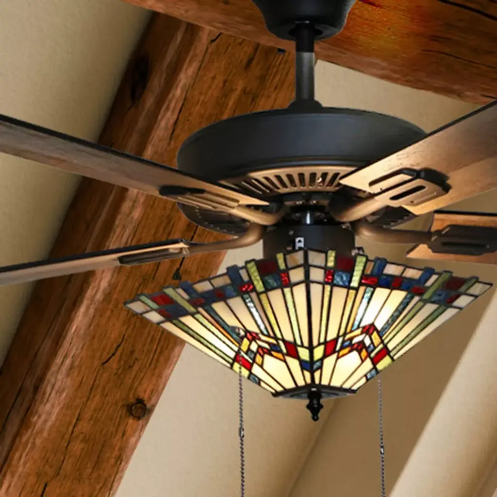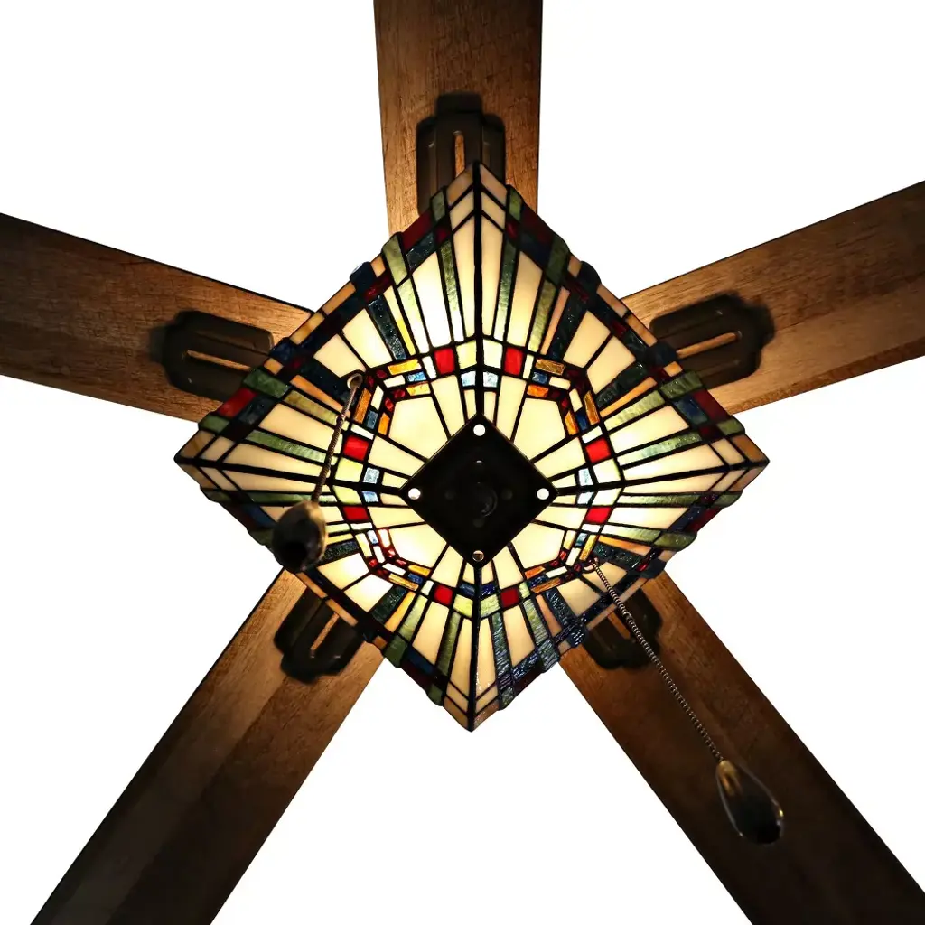 52" 5-blade Led Glass Orson Craftsman Stained Lighted Ceiling Fan - River Of Goods: Pull Chain, Reversible Motor