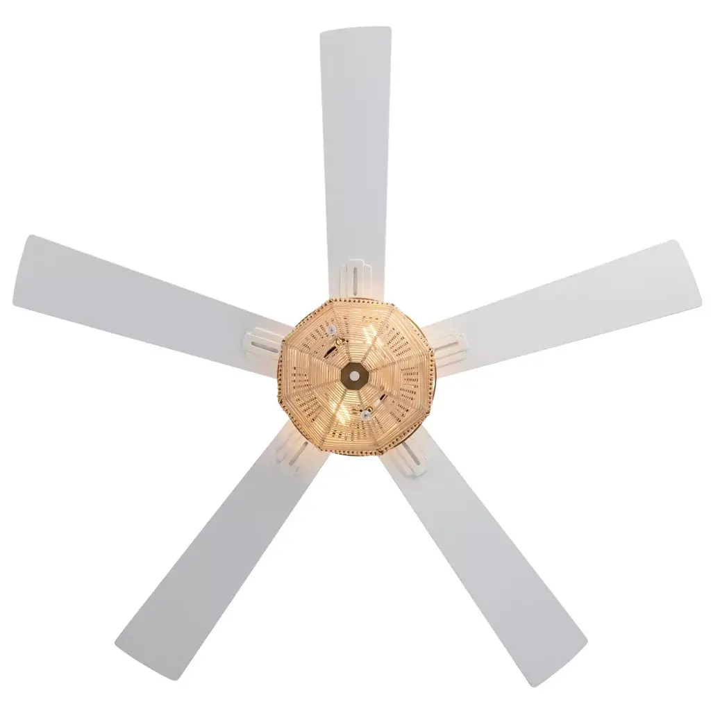 52" 5-blade Led Rattan Lighted Ceiling Fan Tan: Reversible Motor, Pull Chain - River Of Goods