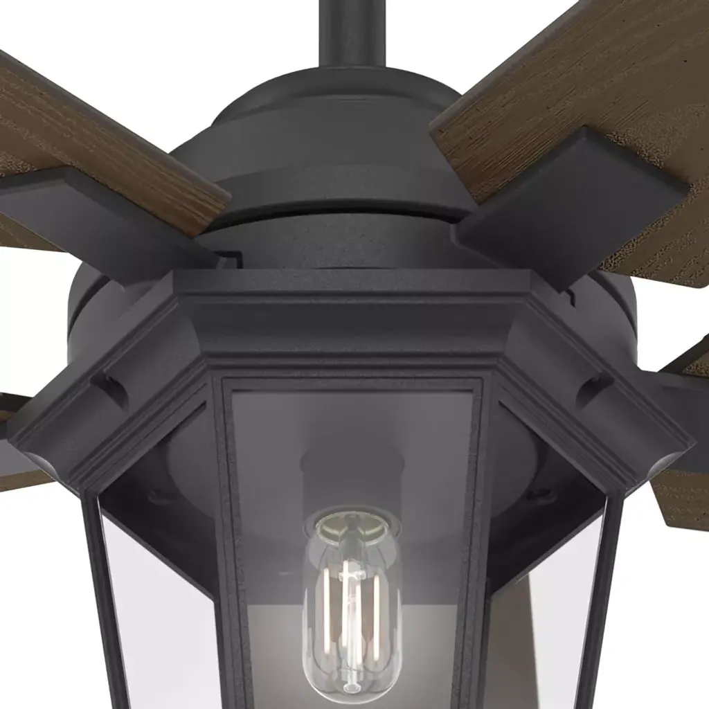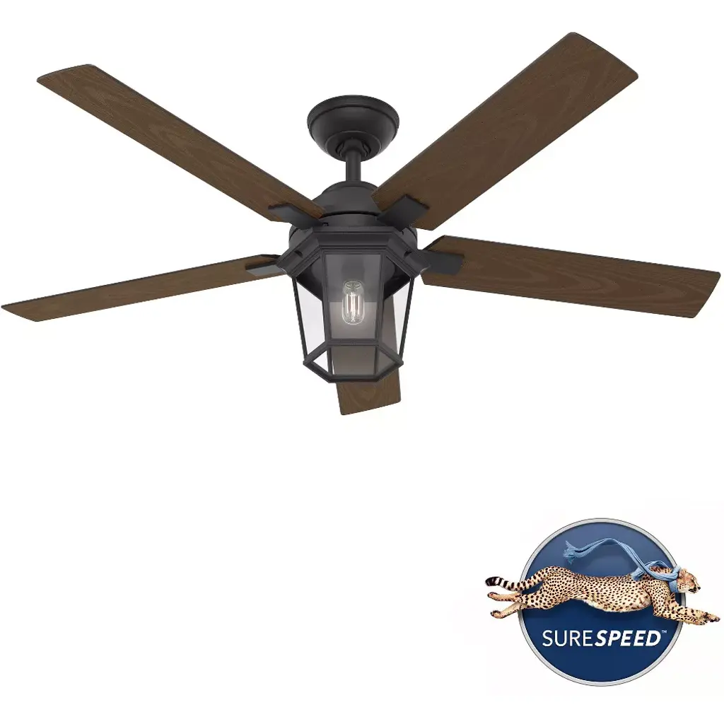 The Candle Bay s Americana style is inviting. Warm light from the lantern-inspired light fixture provides the perfect finishing touch for your cozy spaces. Built with our SureSpeed Guarantee, this traditional ceiling fan delivers optimized, high-speed cooling while maintaining the whisper-quiet performance you expect from a Hunter. Included is 1 bulbs and a Handheld remote.