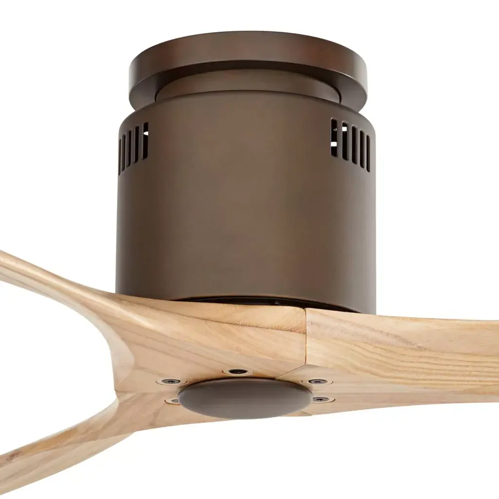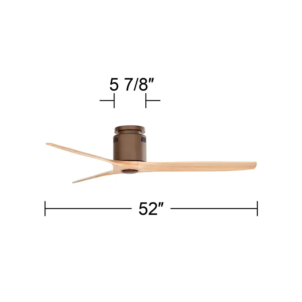 52" Casa Vieja Rustic Farmhouse 3 Blade Indoor Hugger Ceiling Fan With Remote Control Oil Rubbed Bronze Natural Wood For Living Kitchen Dining Room