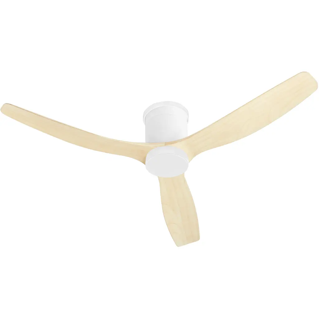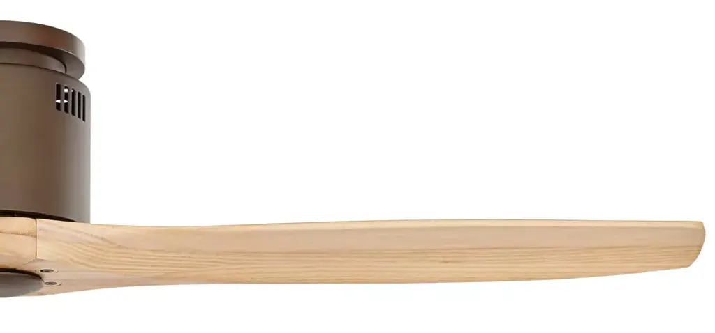 Find modern style and a nice refreshing air-circulation with the Windspun DC hugger ceiling fan. The stylish design features an oil rubbed bronze finish on the DC motor, and is paired with three natural white oak finish solid wood carved blades to complete the design. Includes a full function 5-speed hand held remote control for easy operation.