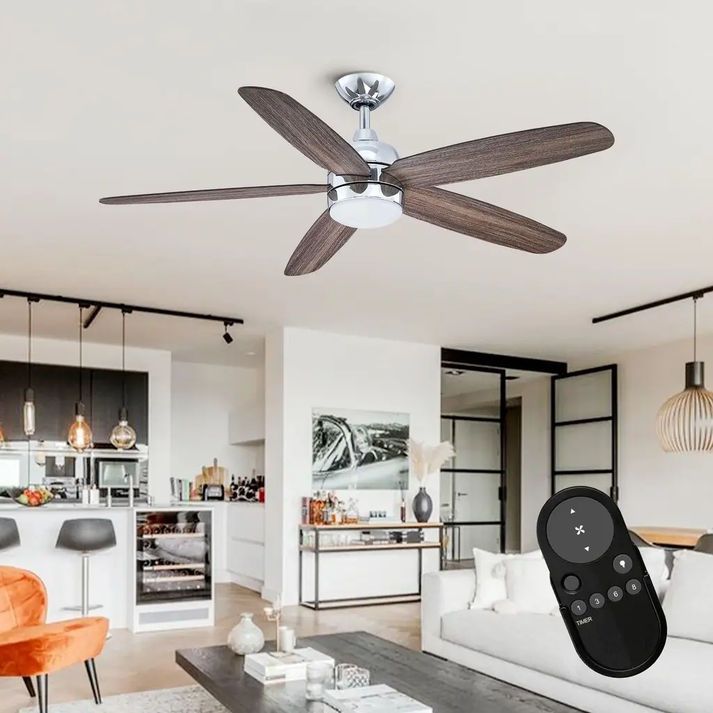This 52" classic design ceiling fan is your ideal choice for both hot and cold weather conditions. Besides its high quality, it operates noiselessly and boasts a stylish design that is also energy-efficient. It features a sleek chrome finish and a simple blade style, but what truly sets it apart is its soft, modern design aesthetic. Therefore, it can easily blend into a wide variety of applications and decors. However, its functionality and elegance are not compromised, making it not only a practical choice but also a fashionable one.