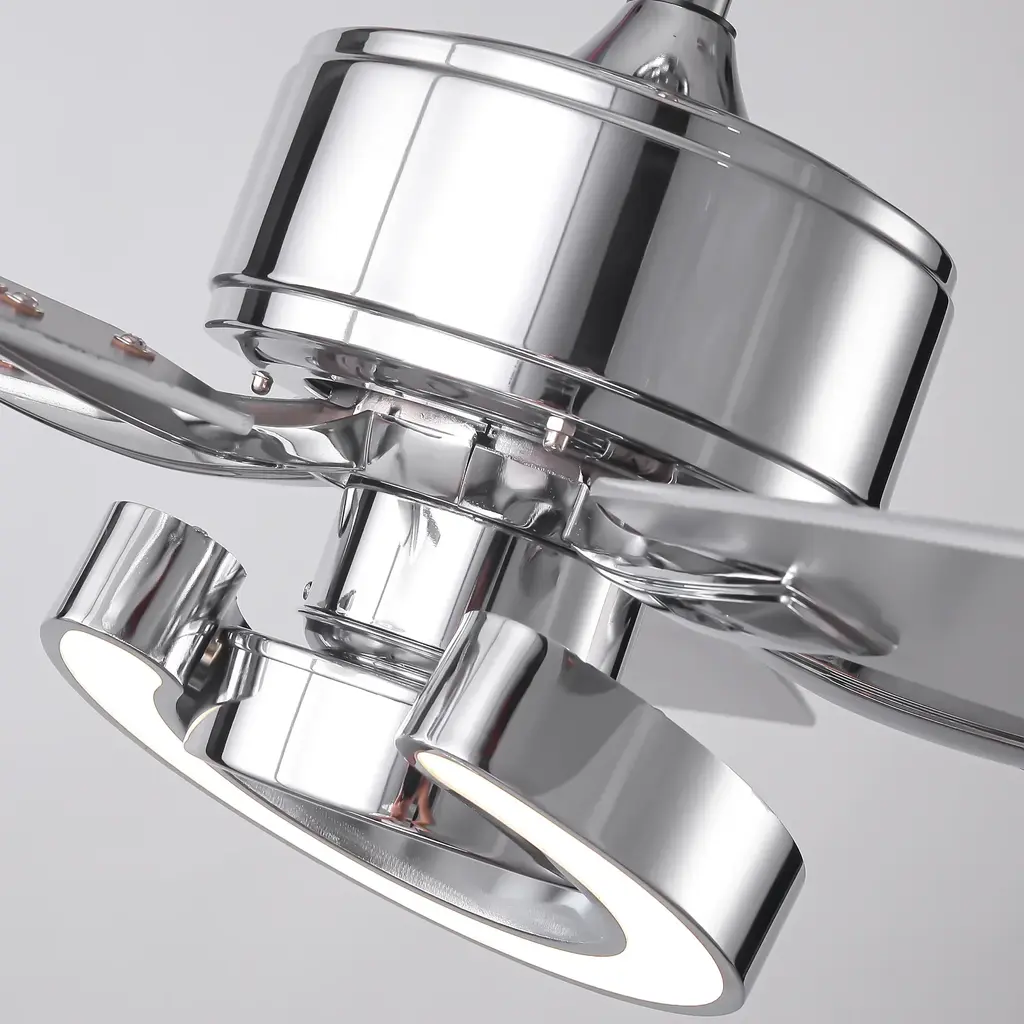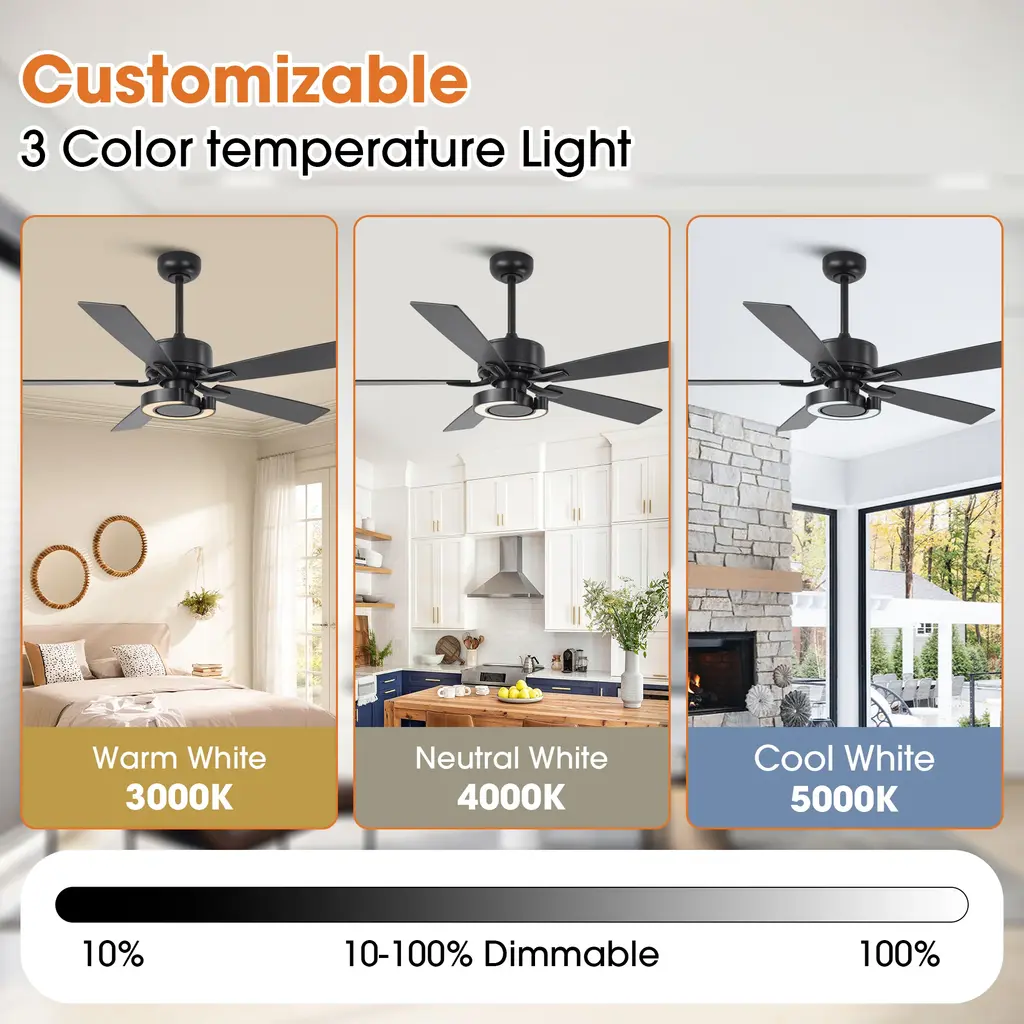 The Arlen 52" Fan: A powerful modern ceiling fan with a uniquely shaped integrated LED lighting and remote control.【Unique Shape LED】: Energy-efficient 24W LED strip provides 2000LM of dimmable light with adjustable color temperature (3000K/4000K/5000K). The LED strip is designed in an arc shape and is full of creativity.【Convenient Control】: Includes remote control for easy adjustment of fan speeds (6 settings), light settings, timer, and memory function.【Silent energy-saving DC motor】: Efficient DC motor delivers strong airflow (3268 CFM) for large rooms up to 350 sq ft, operating quietly at only 38dB.【Complete Downrod Package】: Ready for installation with included 4" and 10" downrods, offering flexibility for various ceiling heights.
