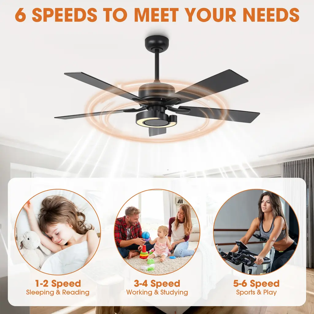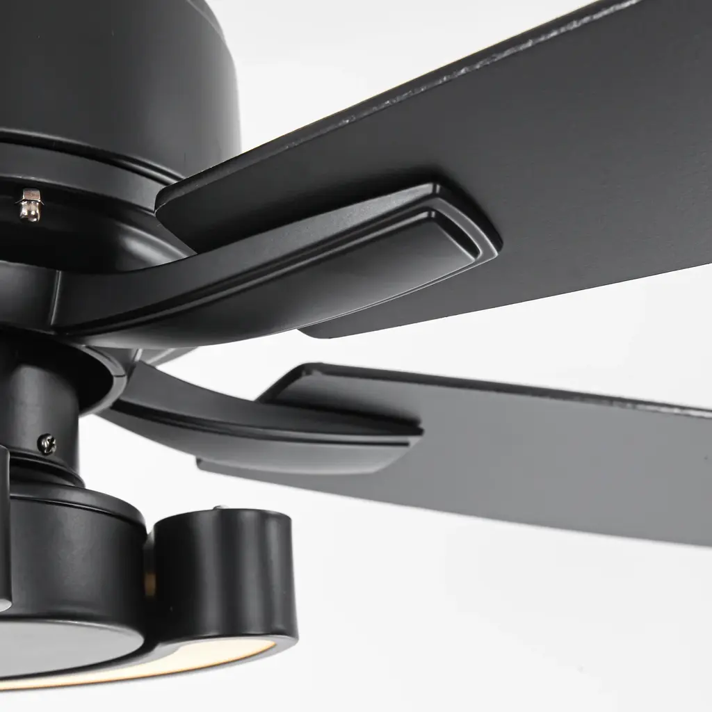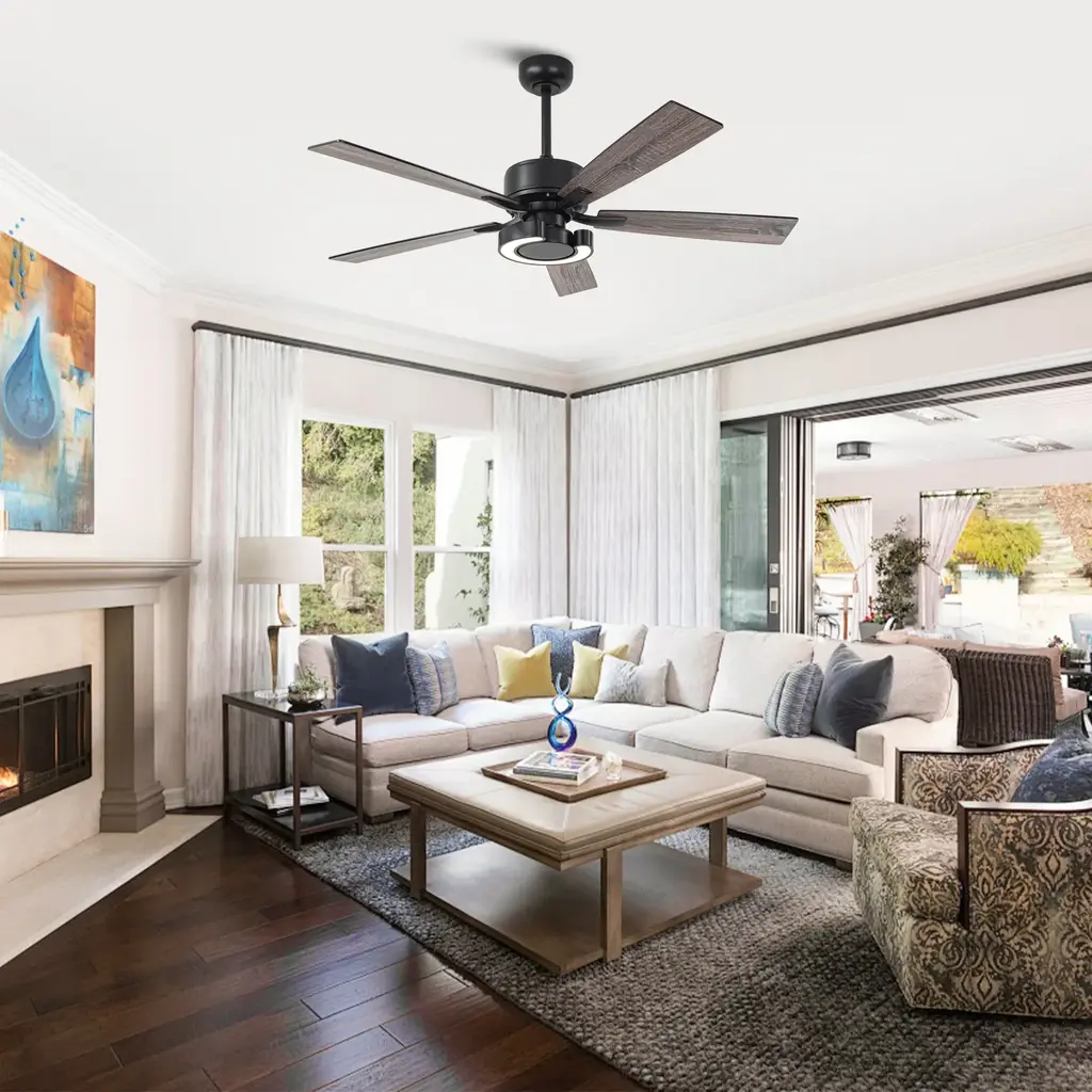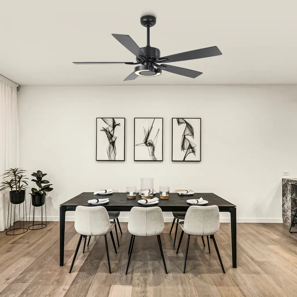 The Arlen 52" Fan: A powerful modern ceiling fan with a uniquely shaped integrated LED lighting and remote control.【Unique Shape LED】: Energy-efficient 24W LED strip provides 2000LM of dimmable light with adjustable color temperature (3000K/4000K/5000K). The LED strip is designed in an arc shape and is full of creativity.【Convenient Control】: Includes remote control for easy adjustment of fan speeds (6 settings), light settings, timer, and memory function.【Silent energy-saving DC motor】: Efficient DC motor delivers strong airflow (3268 CFM) for large rooms up to 350 sq ft, operating quietly at only 38dB.【Complete Downrod Package】: Ready for installation with included 4" and 10" downrods, offering flexibility for various ceiling heights.