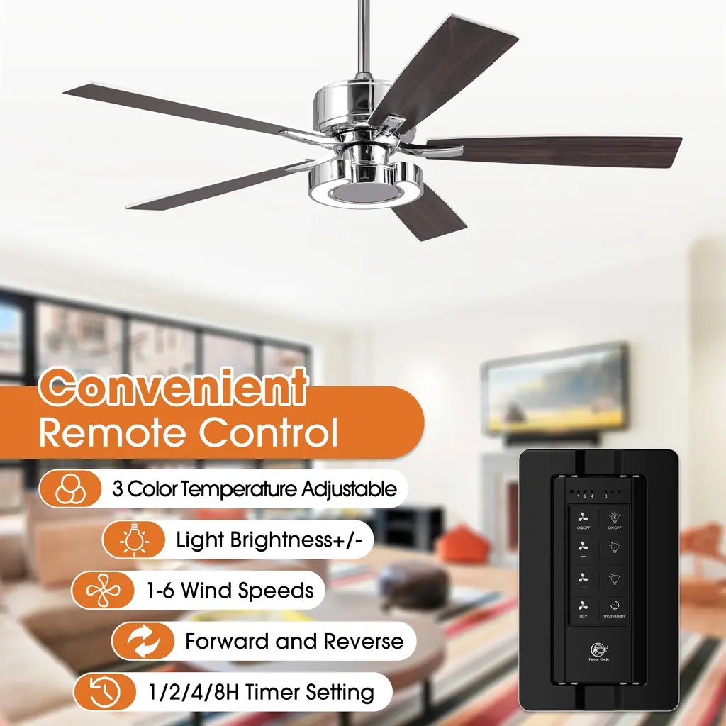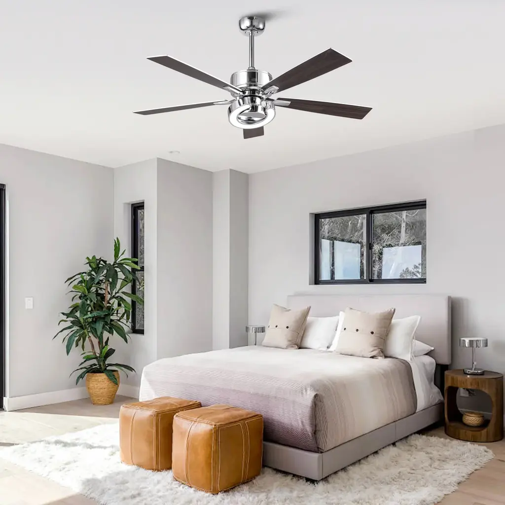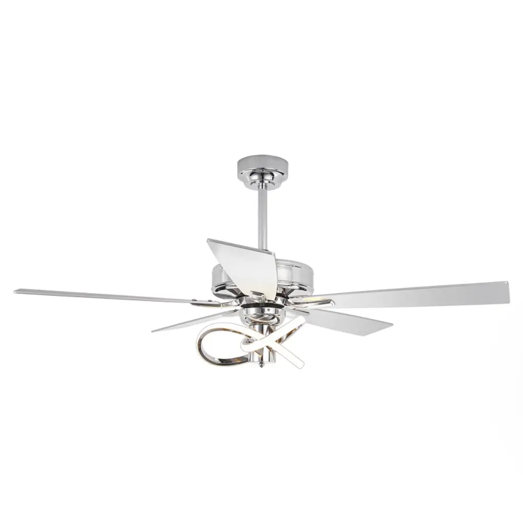 52 Inch Arlen Double-Sided Blades Downrod Mount Led Ceiling Fan With Remote Control - Chrome