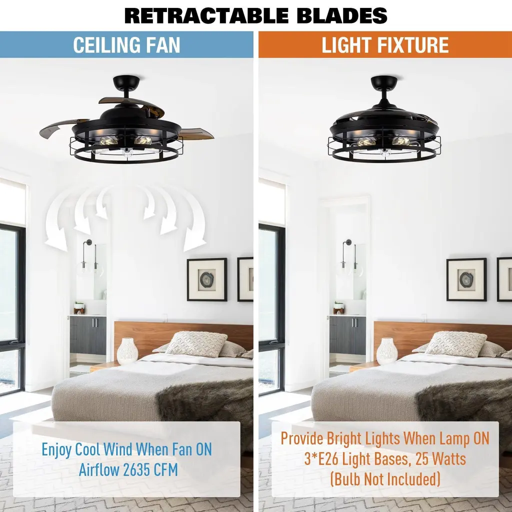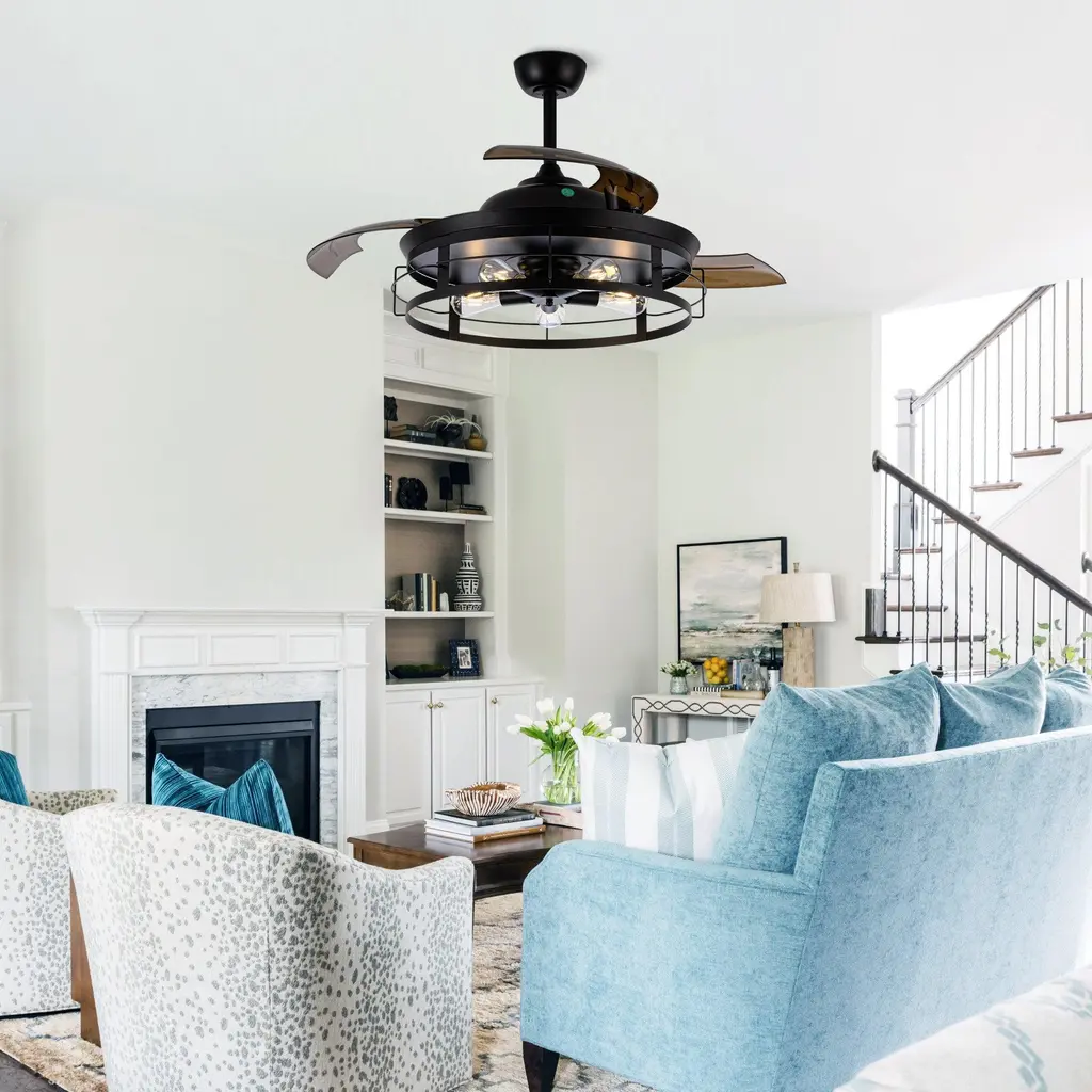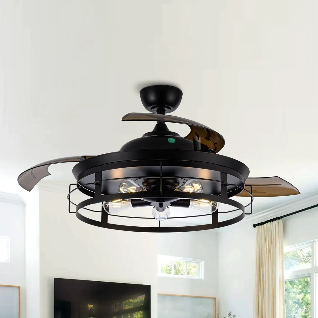 Function meets fashion in this radiant and chic 52-inch retractable chandelier ceiling fan. Three dark brown blades allow for maximum air movement! This matte black ceiling fan adds the perfect touch of glamour to your home while also keeping air circulating with multi-speed functions. The handy remote control provides independent light operation and speed control. The motor technology delivers powerful air movement with whisper-quiet performance.