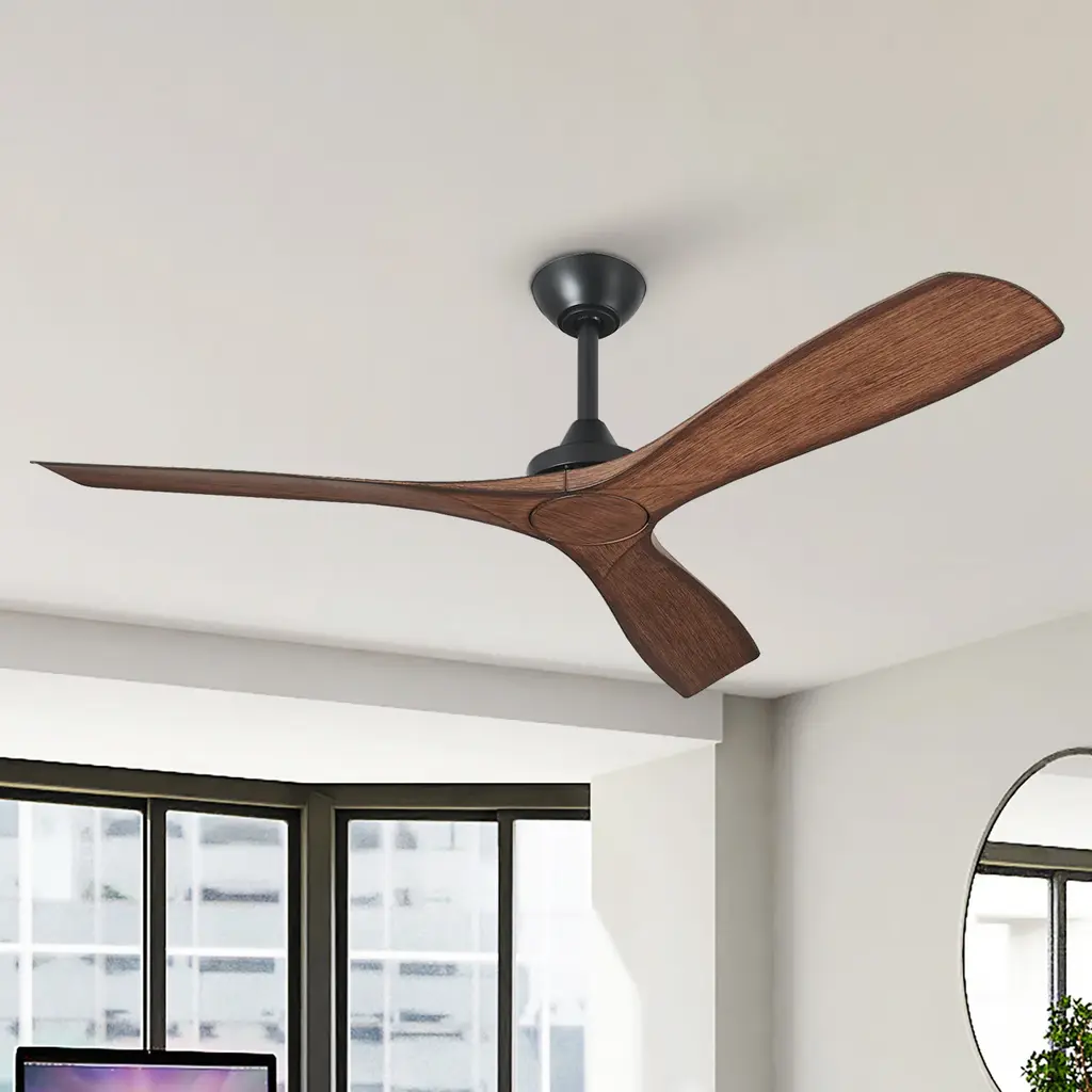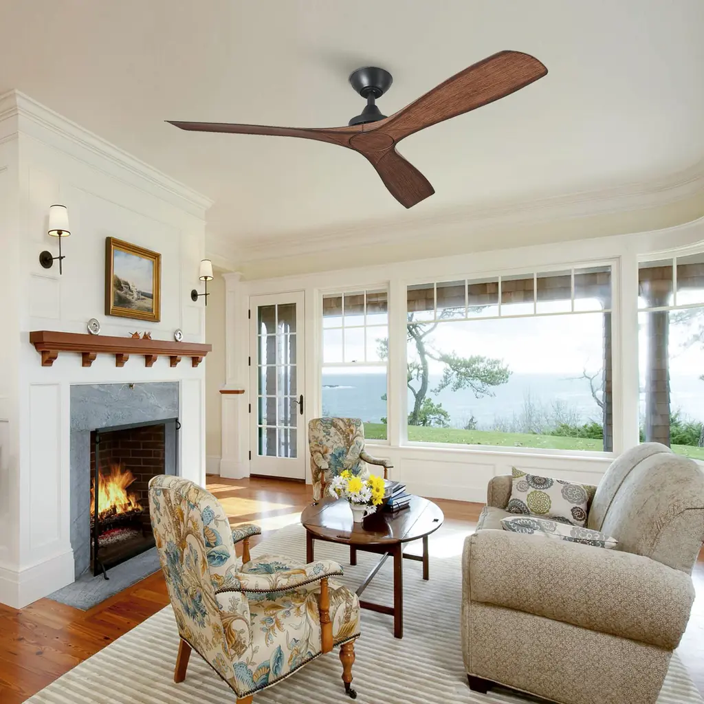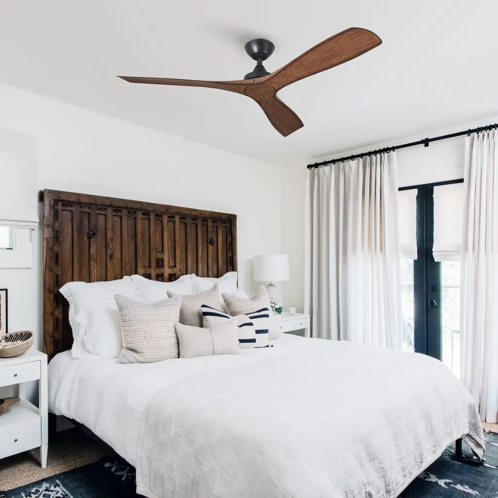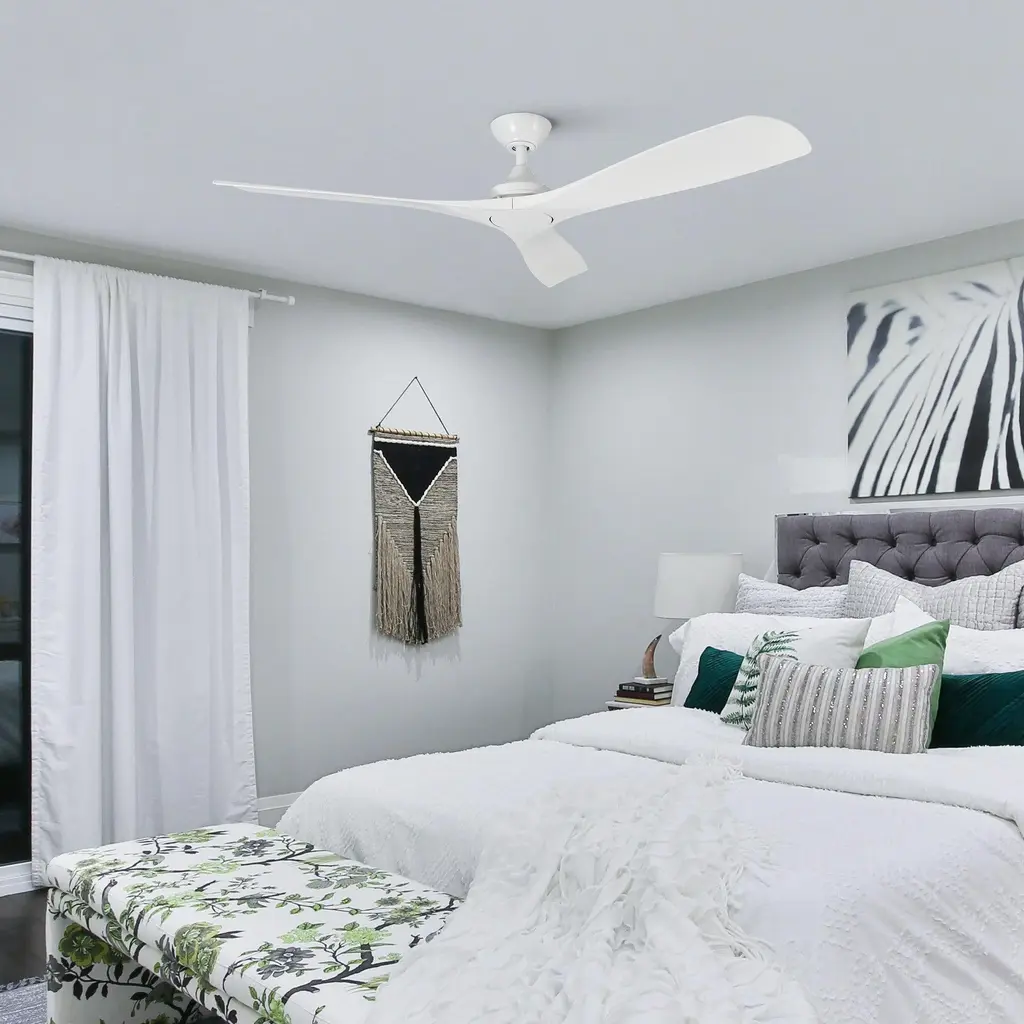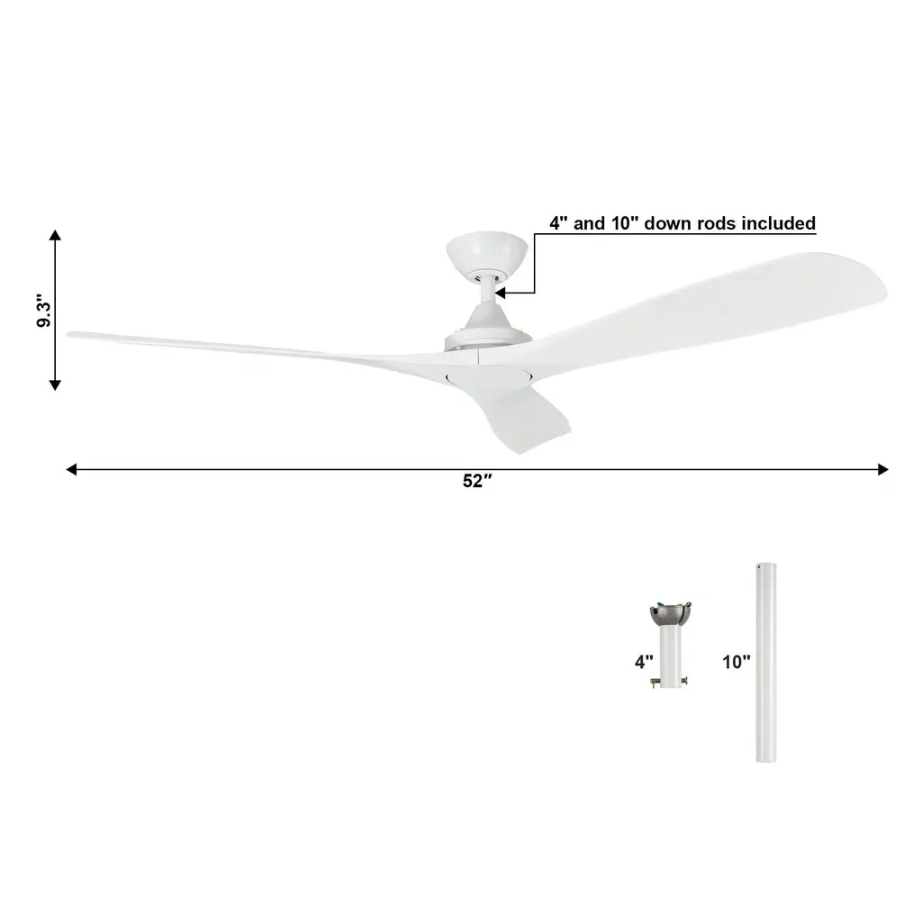 We are captivated by the sleek, contemporary design of this 52" ceiling fan.Firstly, it features three dual-toned blades in walnut and white, while the blade pitch set at a 14° angle for energy efficiency and optimum airflow. Secondly, the fan also includes two adjustable hanging rods, L4" and L10", to cater to your specific requirements. Thirdly, a convenient handheld remote control accompanies the fan, enabling easy operation of its 6-speed motor. The simplicity of its functionality is as impressive as its aesthetic appeal.convenient remote control.