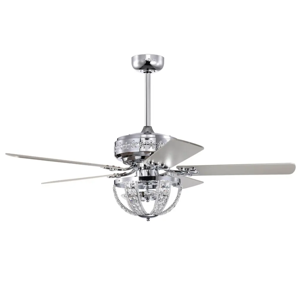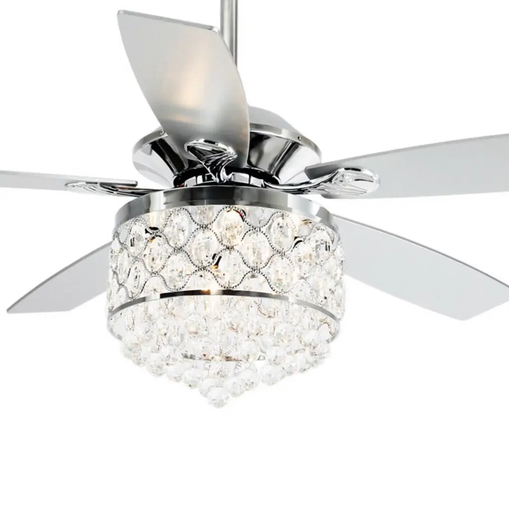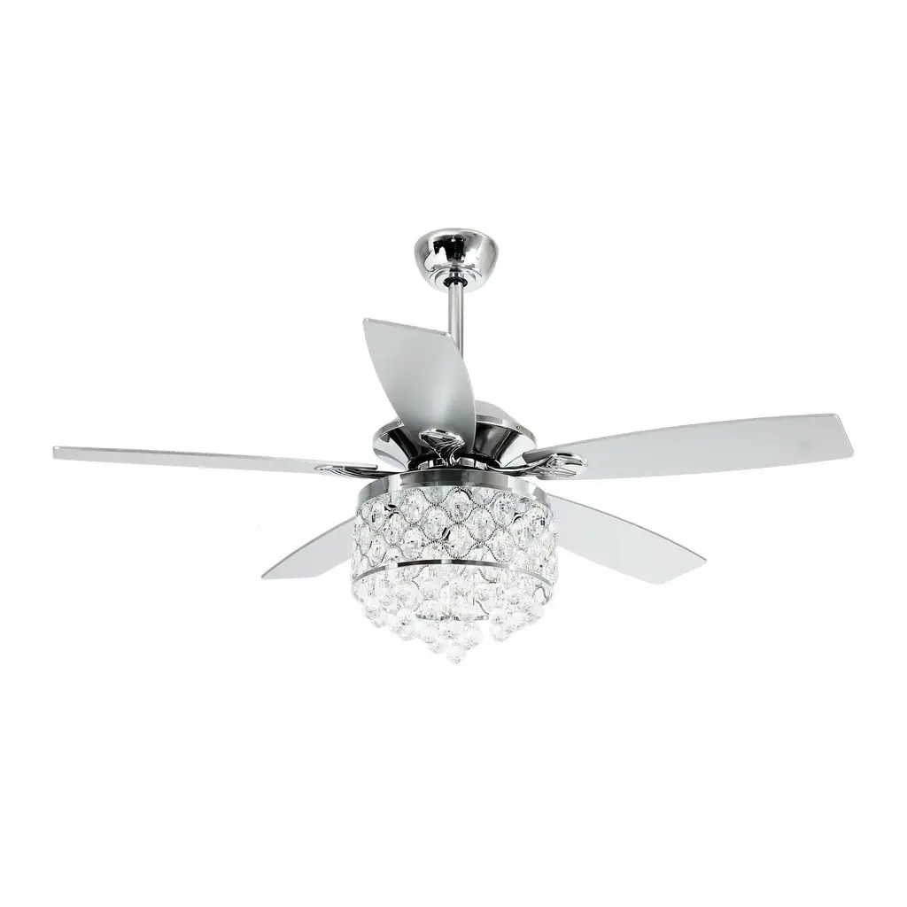 52" Kerala Modern Chrome Downrod Mount Reversible Crystal Ceiling Fan With Lighting And Remote Control - Chrome