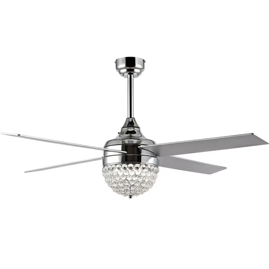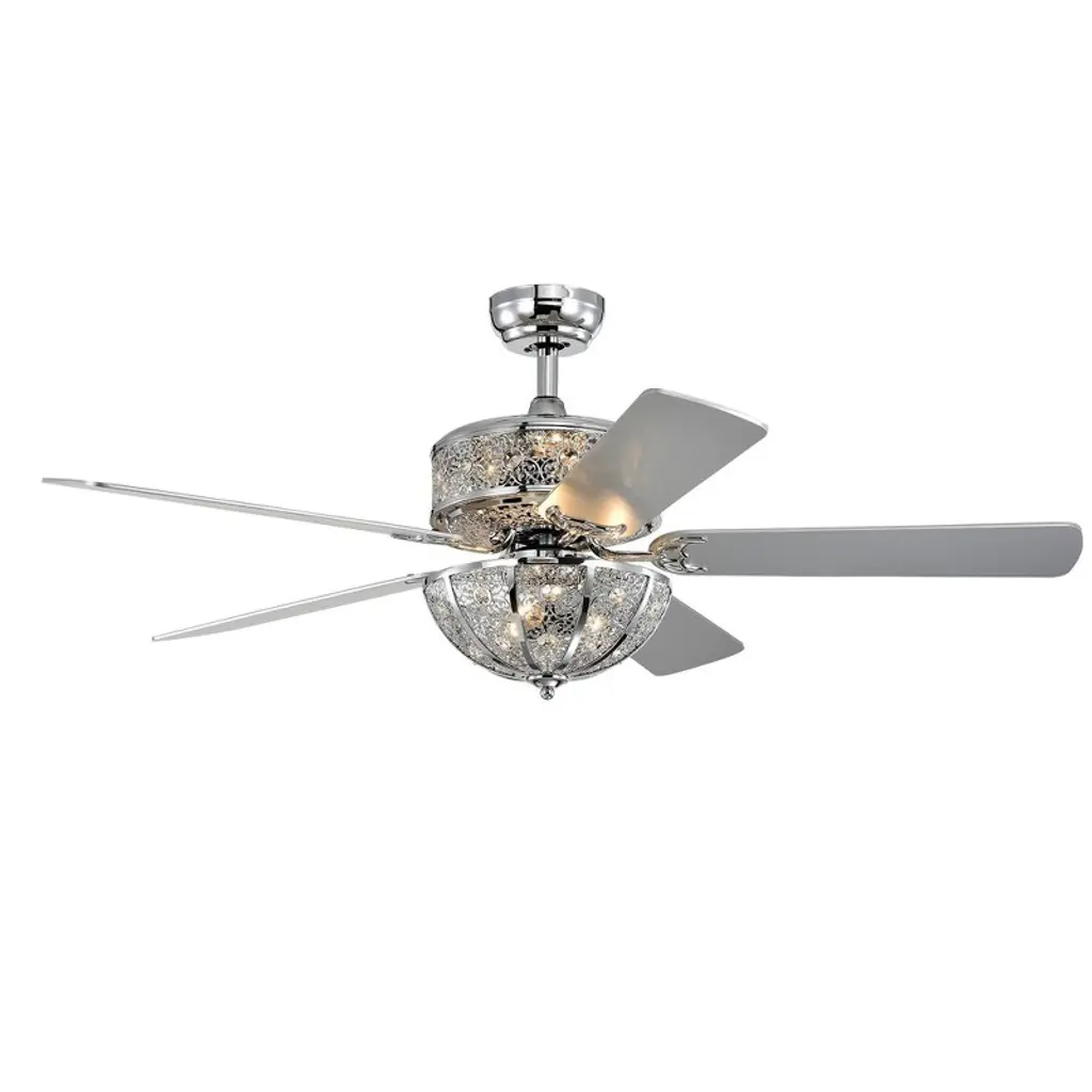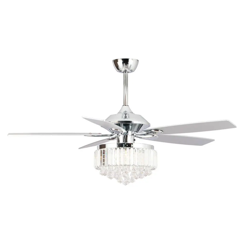 52" Kerala Modern Chrome Downrod Mount Reversible Crystal Ceiling Fan With Lighting And Remote Control - Chrome