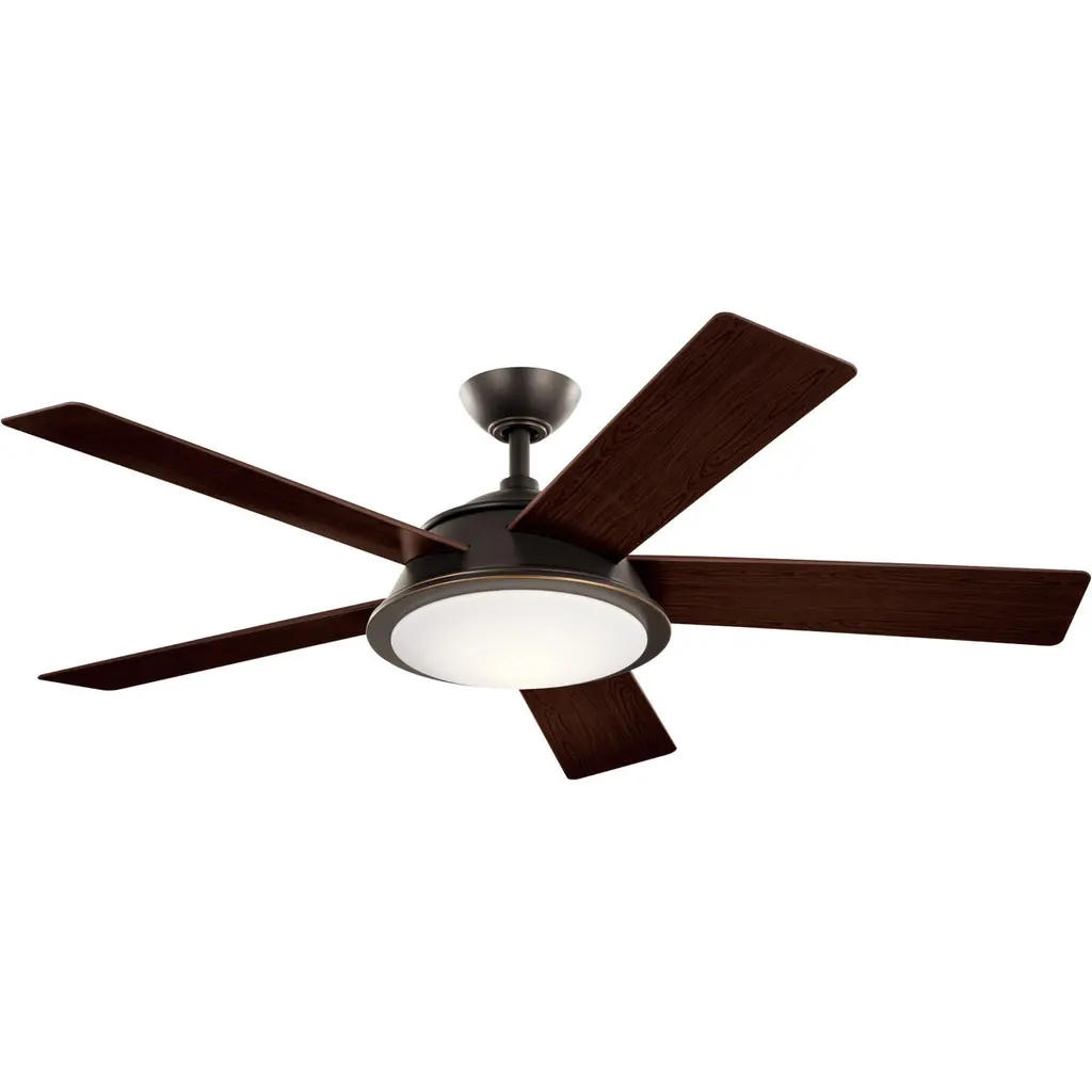 From the Ridley II collection by Kichler, this indoor LED ceiling fan is a stylish and useful update for your living space. It comes in an oil brushed bronze finish cylinder frame, with three blades in a walnut wood finish. Integrated energy-efficient LED module light results with a transitional modern ceiling fan that provides ambient lighting. (IMAP)