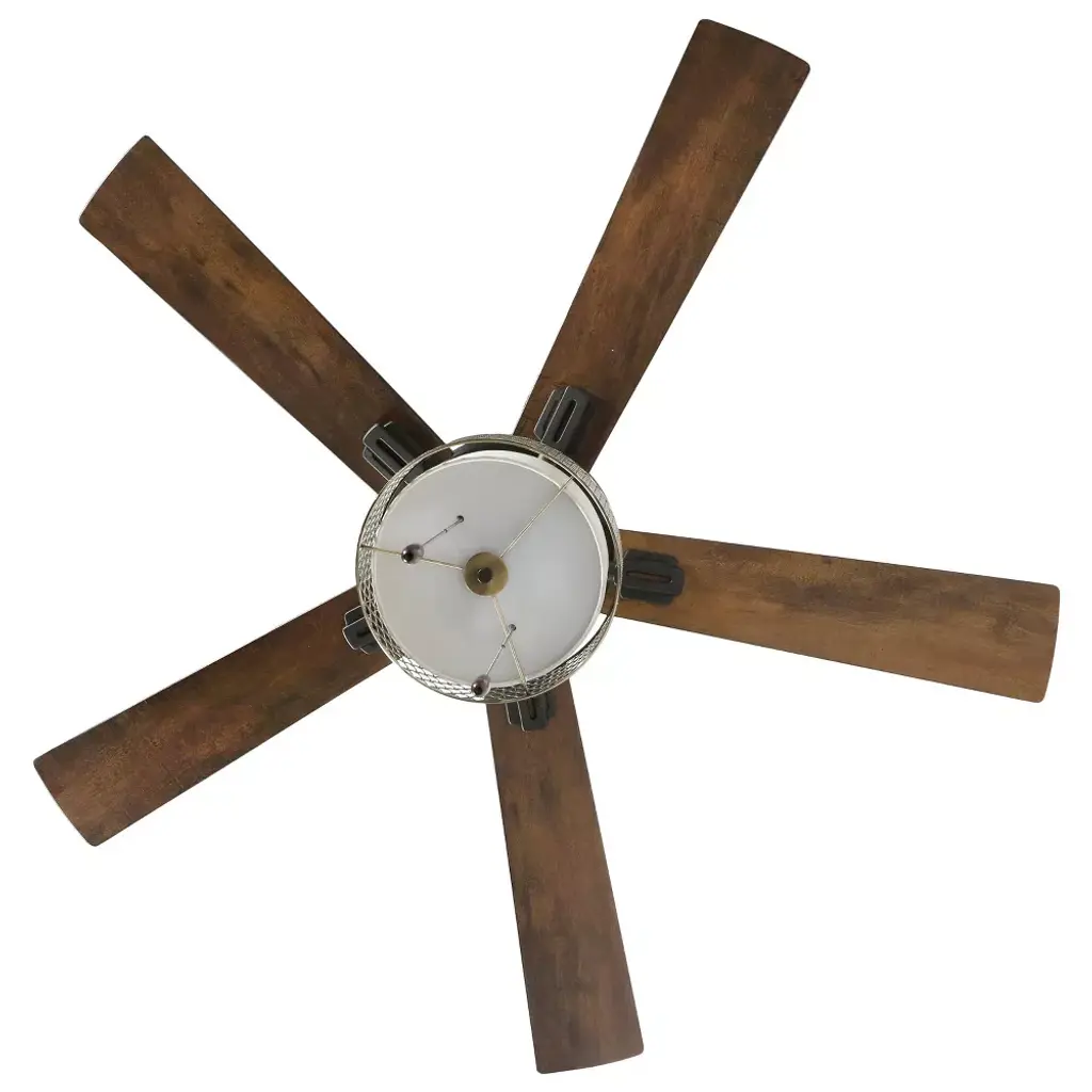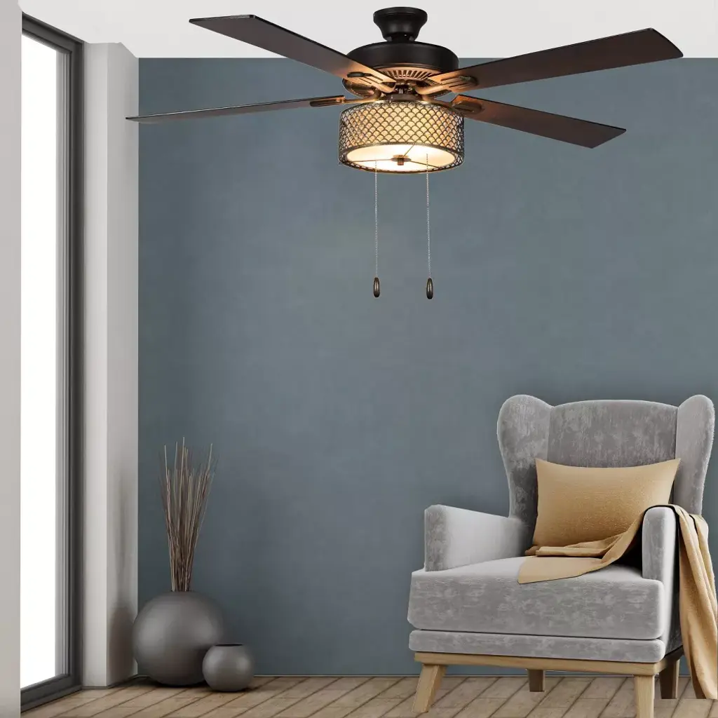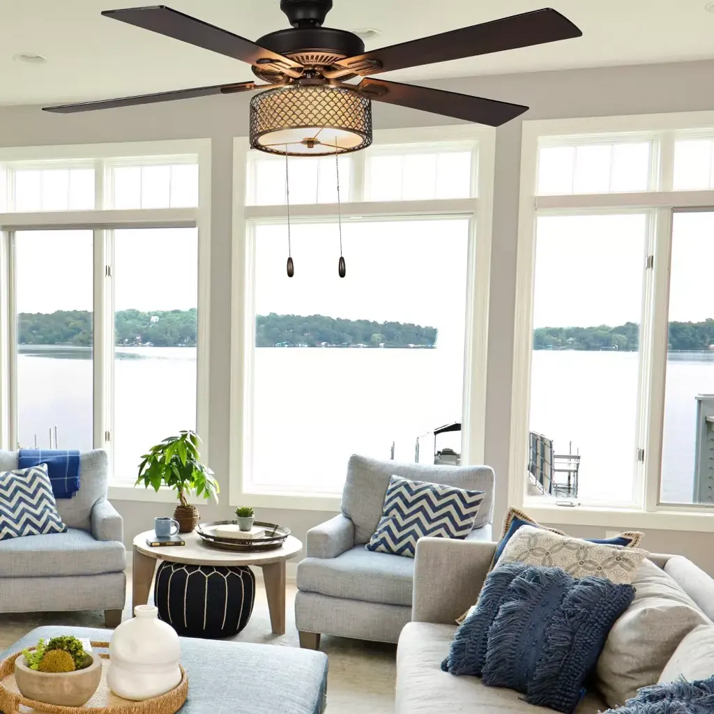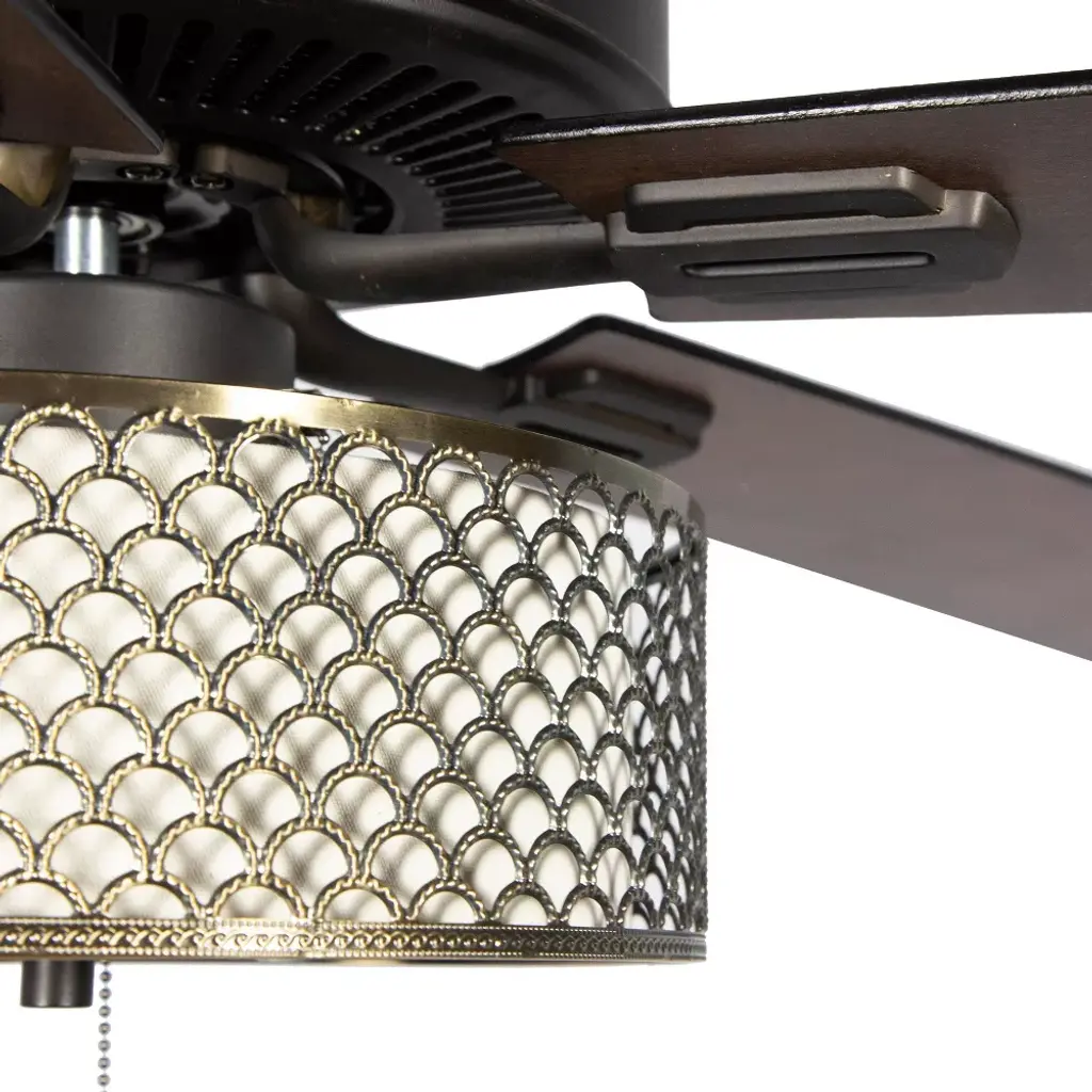 For a ceiling fixture that's equal parts eye-catching and functional, the Bronze Wave 5-Blade LED Ceiling Fan from River of Goods is sure to hit the mark. This ceiling fan has a clean, sleek look, with a metal mesh shade on a metal fixture. The body of the fan has scalloped detailing that adds a little extra dimension and lets light glow through the shade below. The fan comes in a dark shade of bronze that makes it easy as can be to coordinate with any of your existing paint or decor colors. You'll appreciate the convenience of three speeds and a reversible motor that let you circulate hot or cold air exactly as needed, along with two light settings to also adjust the glow in your room. The fan even features five reversible blades that can switch between two wood shades — barnwood and light driftwood — so you can change up the look of the ceiling fan without having to get a whole new fixture.