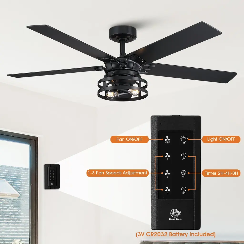 Charming transitional details add industrial style to this matte black LED ceiling fan by Parrot Uncle. Create air circulation in style with the impeccable industrial inspiration of this LED ceiling fan, the fan features five flat two-color finish blades for choice that add to a dramatic presentation perfectly. The fan is adaptable to both flat and sloped ceilings and includes a remote control for easy operation.