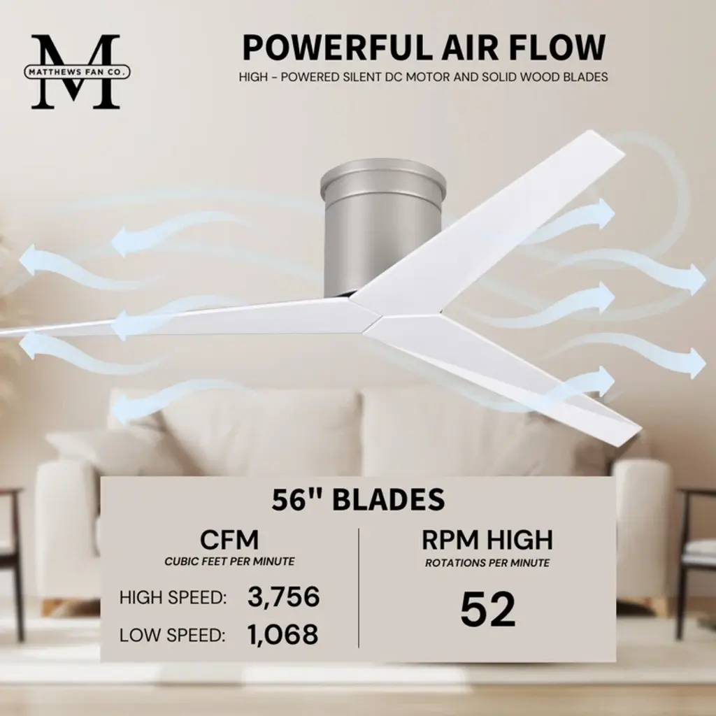 Drawing on architectural silhouettes, this ceiling fan pairs a bold, clean-lined look with updated, versatile modern elements. It's crafted in a propeller style with tree blades. The blades have a twisting edge that's designed to scoop air while they spin. And since this piece has a 56'' blade span, it's best for medium-sized rooms. A remote controller lets you choose from any of the six speeds – including a reverse spin – without having to get up.