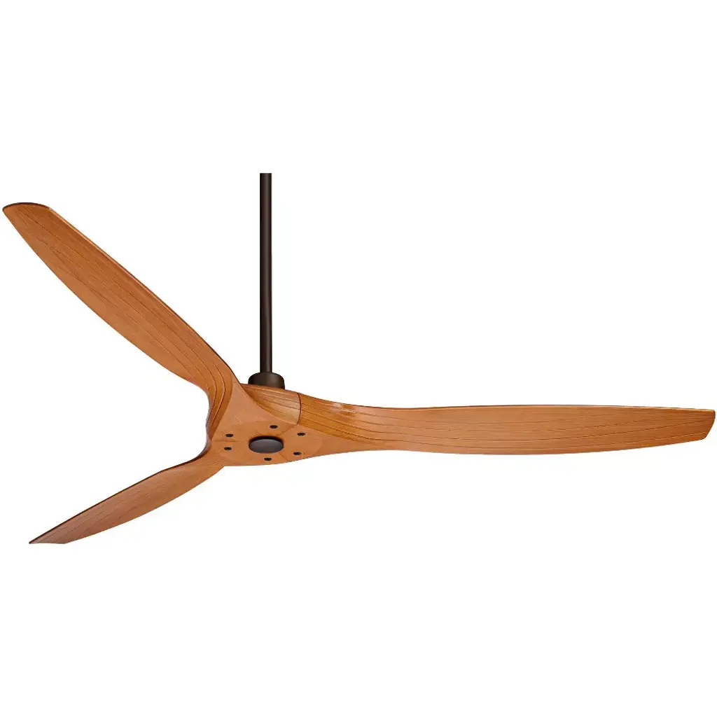 The Aireon outdoor ceiling fan from Casa Vieja® is designed for use in damp locations. It features three sweeping blades in a walnut wood finish, with a rubbed bronze finish motor and downrod. This contemporary ceiling fan can be operated with a full function handheld remote control, which comes included.