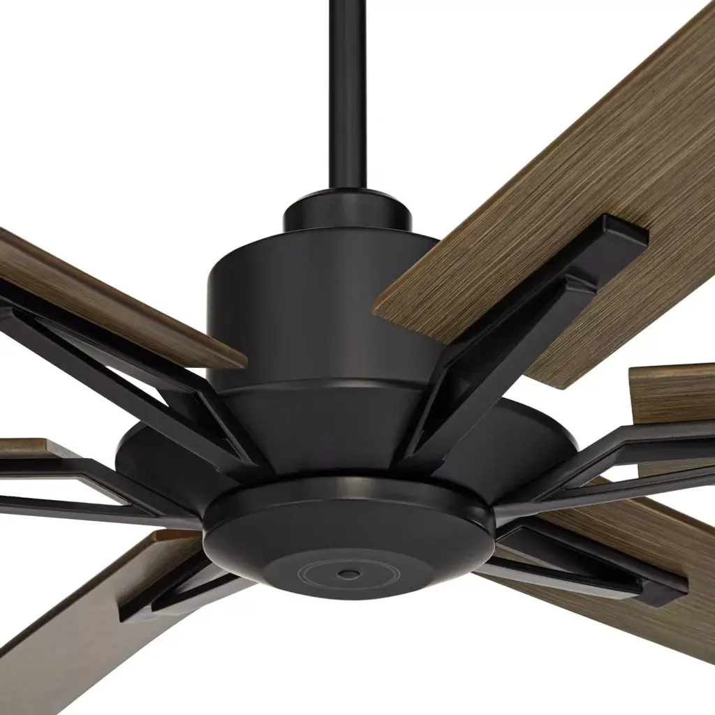 60" Casa Vieja Rustic Outdoor Ceiling Fan With Remote Control Matte Black Weathered Oak Damp Rated For Patio Exterior House Home