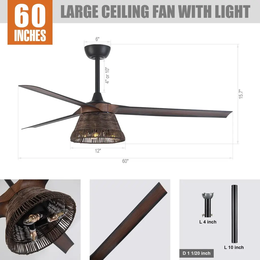 60" Farmhouse Ac Motor Downrod Mount Reversible Ceiling Fan With Lighting And Remote Control - Brown