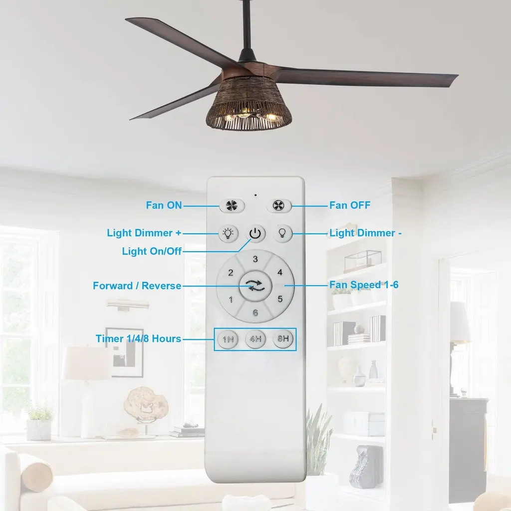 This 60-inch ceiling fan with 3 blades will bring a farmhouse look into your space. Easily operate this fan with the included remote control, also a convenient reverse blade direction function.